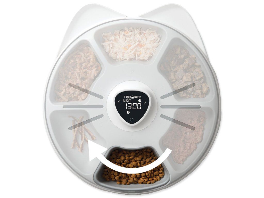 - Všestranné a individuální použití: podává až 6 krmení denně, granule, mokré krmivo a pamlsky.