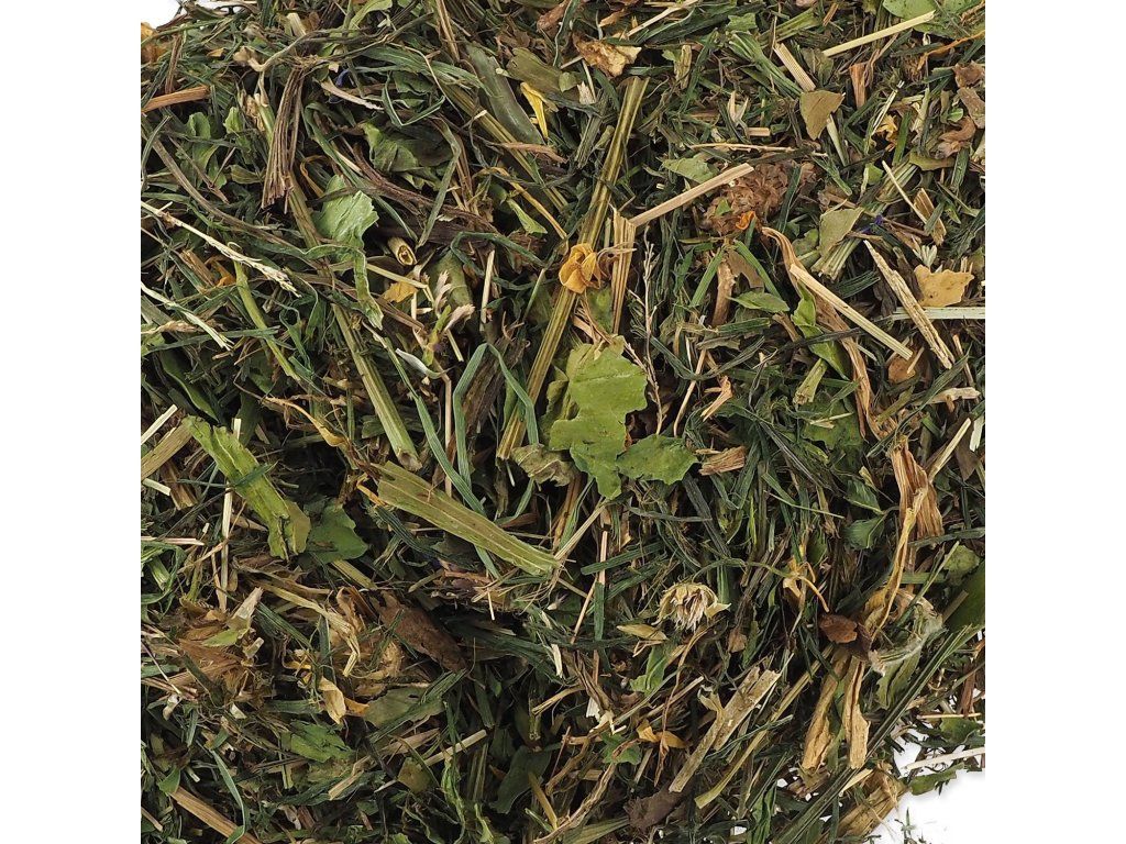 Složení: seno z horských luk 50 %, sušený jitrocel 45 %, sušené květy chrpy 5 %.