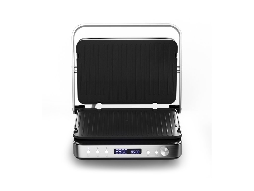 Domácí gril GRILLCHEF-3 splní i nejnáročnější očekávání dokonale připraveného masa, ryb a zeleniny. Vytvořte si chutný oběd, či večeři na dvou grilovacích deskách s nepřilnavým vroubkovaným a hladkým povrchem. Gril můžete využívat k ohřevu vrchní desky, nebo dolní desky, nebo na ohřev obou desek současně. Teplota grilu je nastavitelná od 80 až 230 °C. Taky si můžete nastavit čas, který potřebujete k přípravě dané potraviny. Při uplynutí zadaného času vás upozorní zvuková signalizace. Velký LCD displej je zabudovaný na přední liště kontaktního grilu. Součástí grilu je i miska na odkapávání šťávy a oleje.
