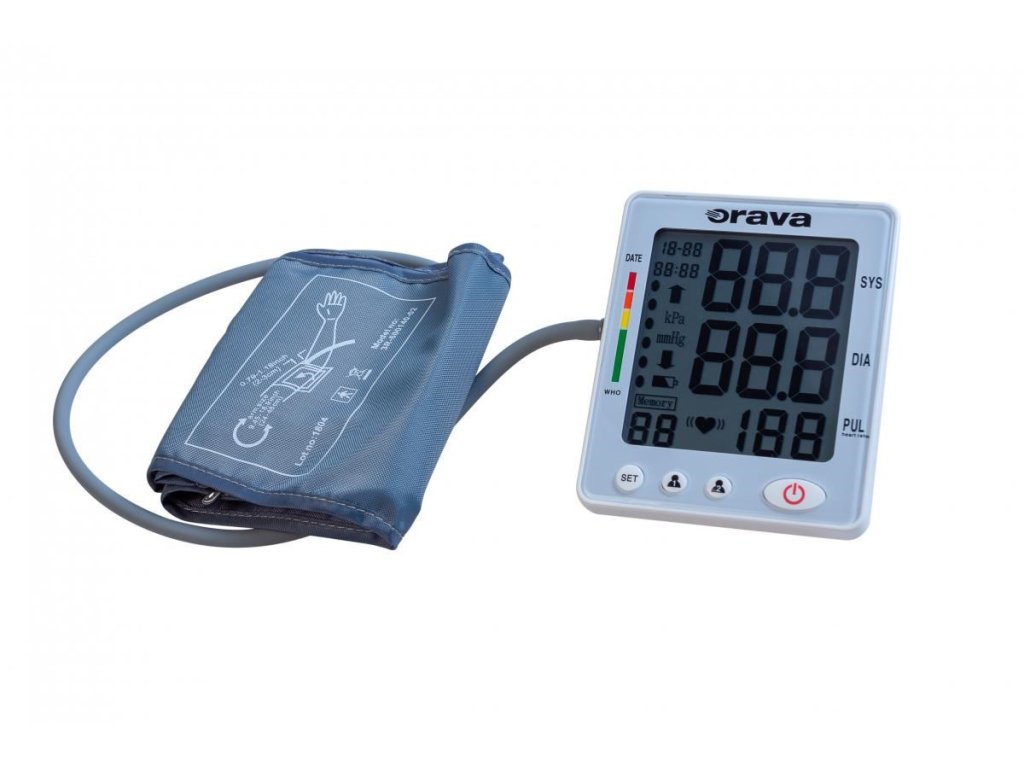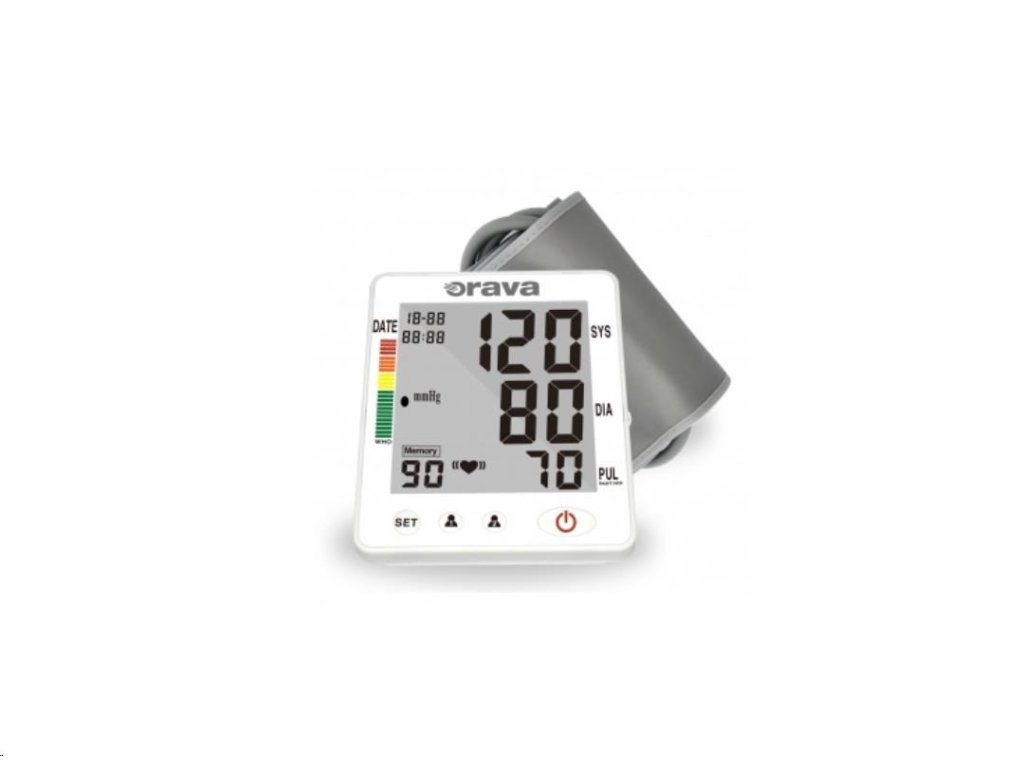 Plně automatický digitální tlakoměr Orava TL-100 s kónickou manžetou na rameno zajistí spolehlivé měření krevního tlaku. Tlakoměr měří lidský systolický, diastolický krevní tlak a puls na tepně v rameni a využívá k tomu oscilometrickou měřící metodu. Doporučujeme, aby přístroj používaly pouze osoby starší 18 let. Přístroj je určen pro domácí použití, nikoliv pro profesionální klinické používání. Vlastnosti: Automatický krevní tlakoměr na rameno Oscilometrická metoda měření Velký přehledný LCD displej Jednoduché ovládání pouze jedním tlačítkem Měří systolický a diastolický tlak a srdeční puls Rozsah měření: tlak 0 - 305 mmHg, puls 30 až 160x / min. Přesnost měření: +/- 5 mmHG, puls +/- 5% Indikace arytmie Paměť 2 x 90 měření včetně záznamu data a času měření Manžeta pro obvod paže 22 - 48 cm automatické vypnutí Indikace vybité baterie Napájení: 4x AA baterie nebo síťový adaptér (není součástí balení).