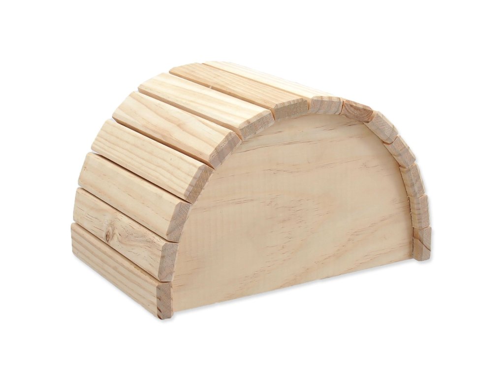 Dřevěný půlkruhový domek pro drobné savce.