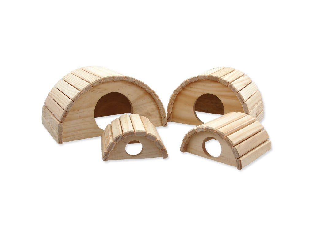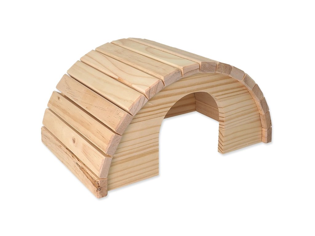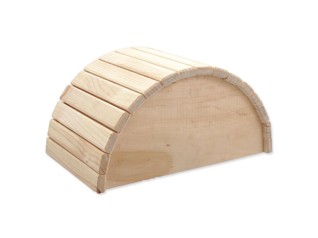 Dřevěný půlkruhový domek pro drobné savce.