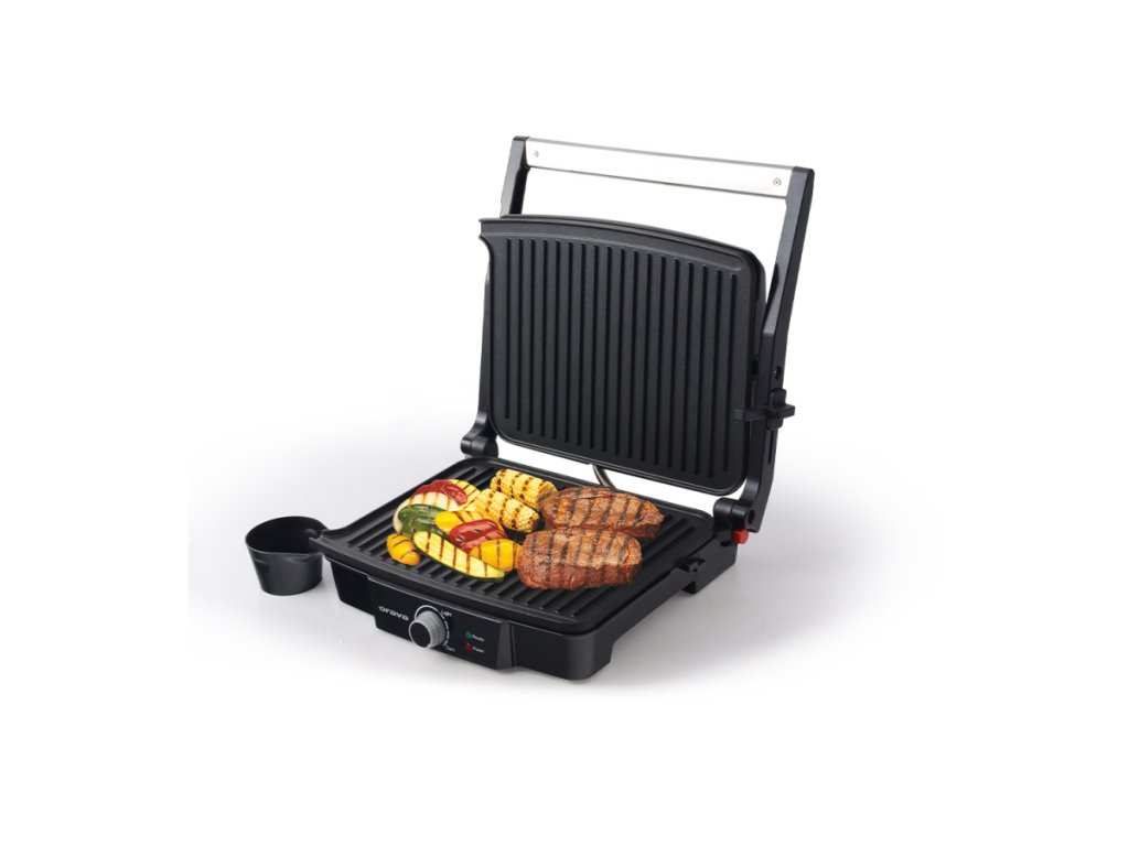 Domácí gril GRILLCHEF splní i nejnáročnější očekávání dokonale připraveného masa, ryb a zeleniny. Vytvořte si chutný oběd, či večeři na dvou grilovacích deskách s nepřilnavou vroubkovanou vrstvou. Když je gril nahřátý na požadovanou teplotu, signalizační kontrolka se rozsvítí. Šťáva z připravovaných surovin steče do dvou odkapávacích misek. GRILLCHEF je snadno omyvatelný a skladný.