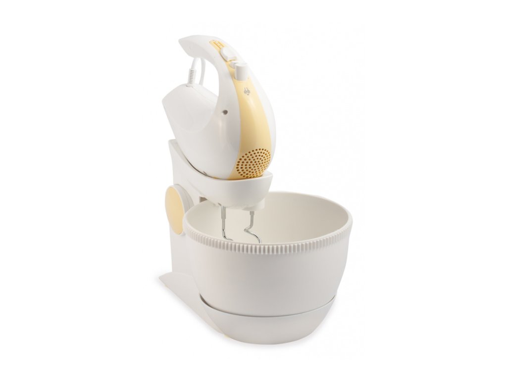 Součástí je otočná nádoba s mechanickým pohonem a bohaté příslušenství. Společně s ručním šlehačem získáte také dvojici velmi výkonných háků na míchání a dvě metly na šlehání, vyrobené z ušlechtilé oceli a navíc pochromované, dosahující kvalitních výsledků při šlehání v krátkém čase.