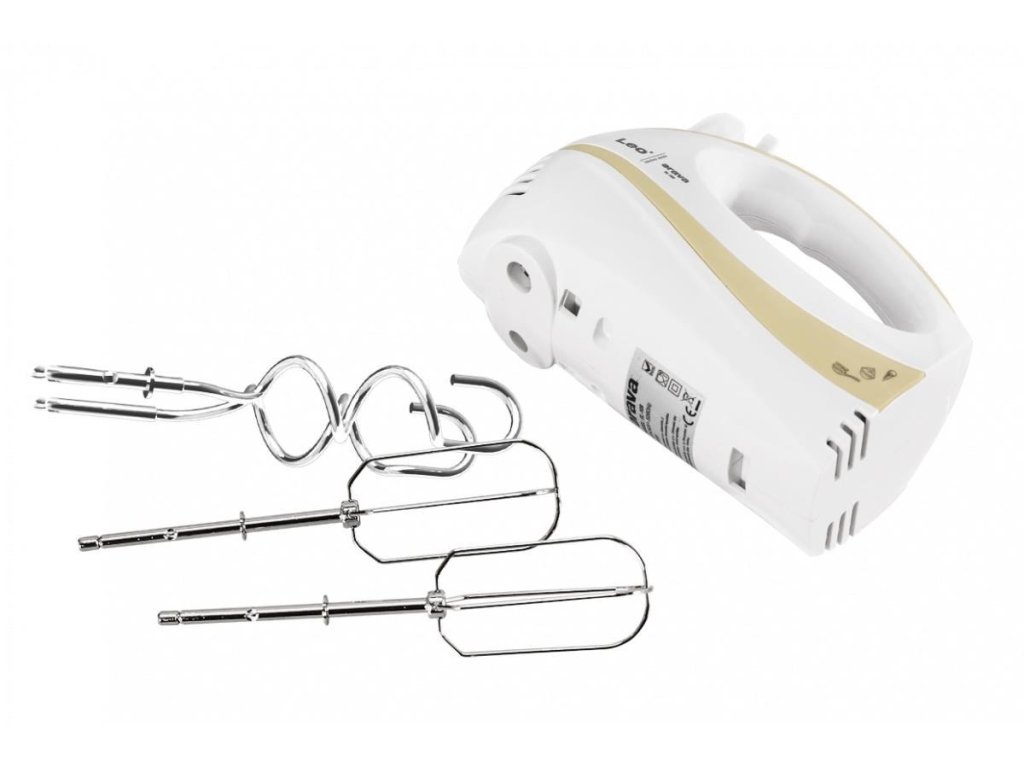 Součástí je bohaté příslušenství. Společně s ručním šlehačem získáte také dvě velmi výkonné metly na míchání, vyrobené z nerezové oceli, které dosahují kvalitní výsledky při šlehání v krátkém čase. Kromě těchto metel jsou k dispozici také stabilní šlehací háky.