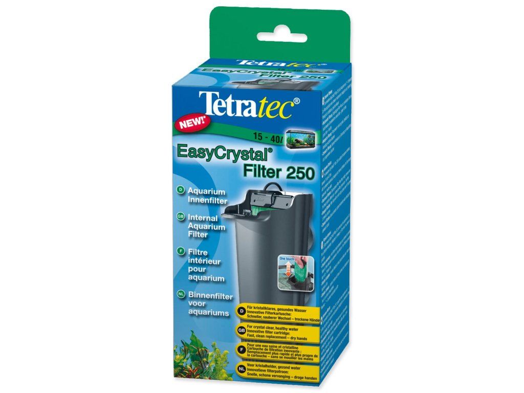 Svým vynikajícím mechanickým, biologickým i chemickým filtrováním se filtr Tetratec EasyCrystal postará o křišťálově čistou a nezávadnou vodu ve vašem akváriu. Údržba je velmi jednoduchá, bez promývání filtračního média, bez mokrých rukou.