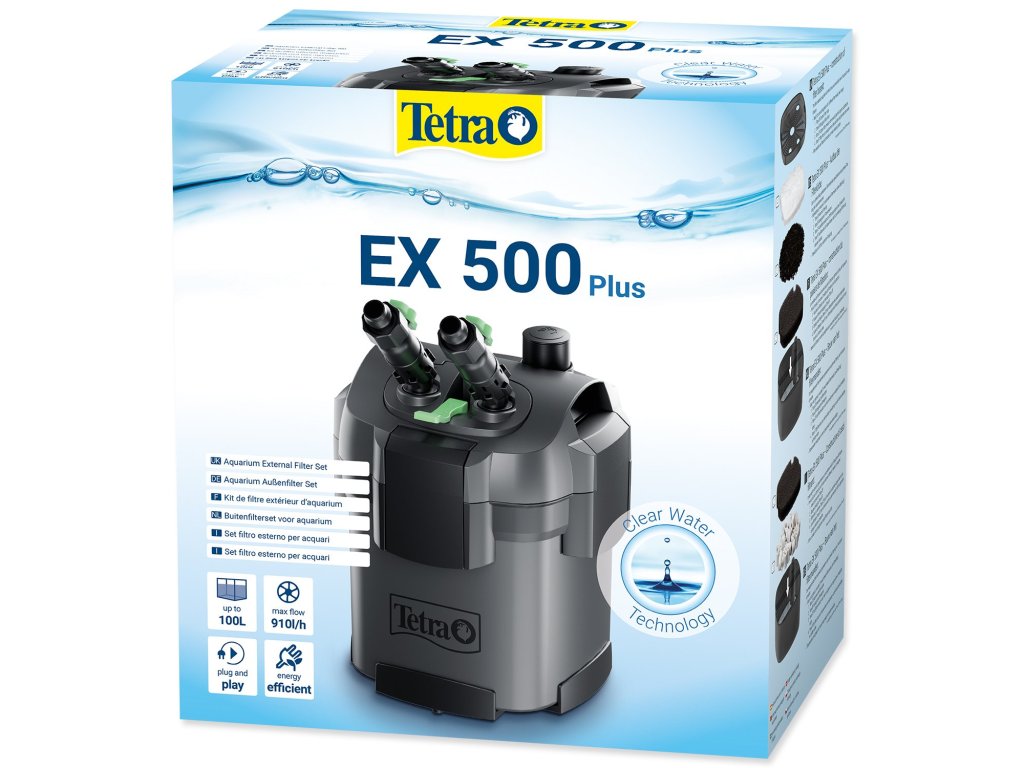 Jeho energicky úsporný a tichý provoz je dokonalý pro jakékoliv domácnosti. Filtr TetraTec EX zahrnuje také pomocné sací zařízení pro snadné nastartování filtru, ventily pro přesné řízení průtoku vody a funkci předfiltrování pro minimalizaci údržby.