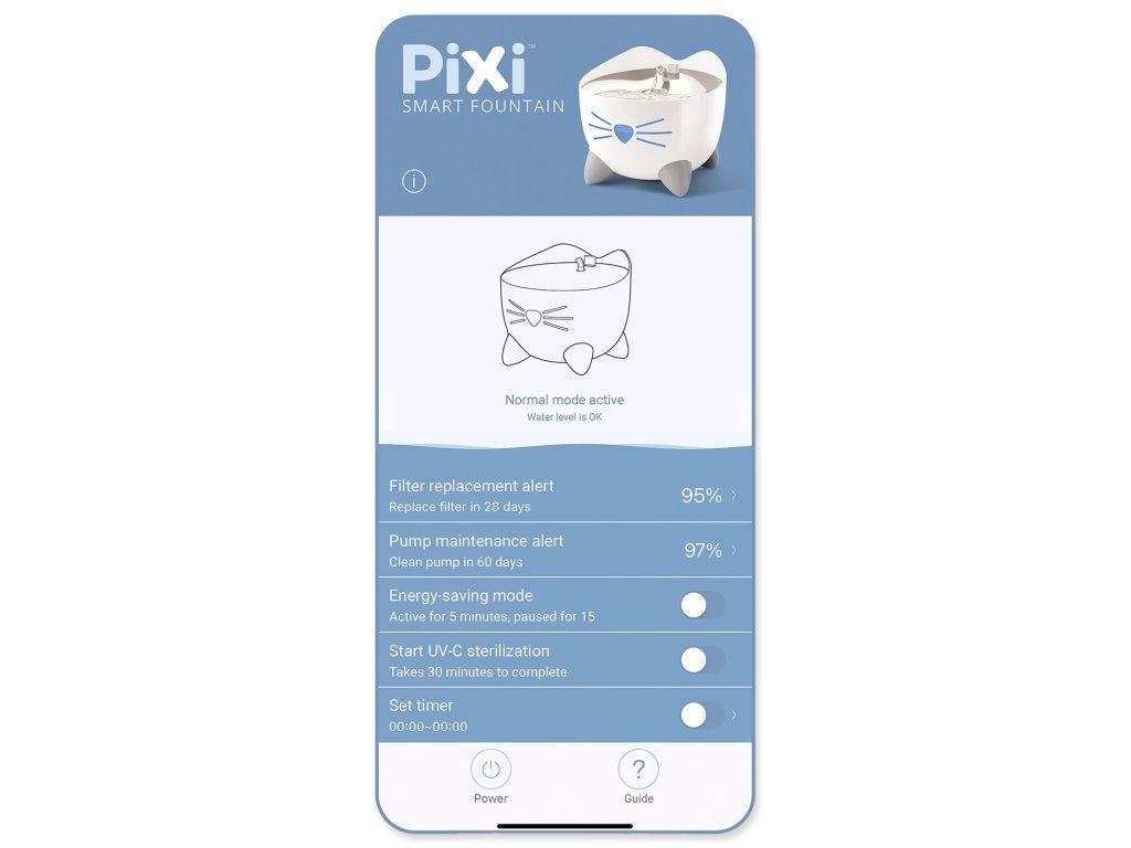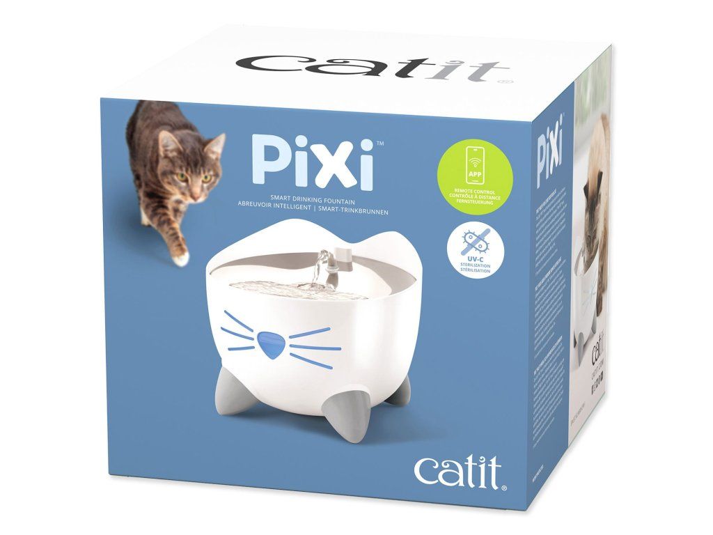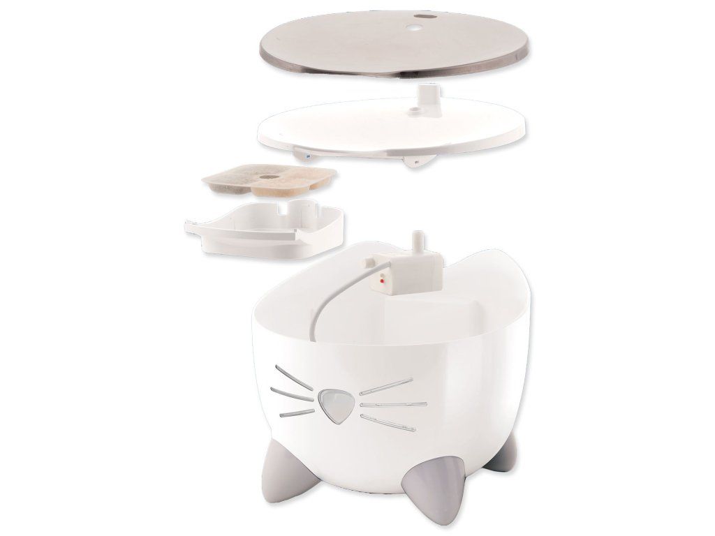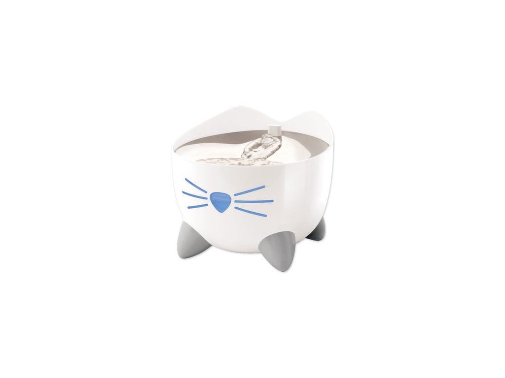 Fontána Catit PIXI poskytuje vaší kočce nepřetržitý přísun čerstvé a čisté vody. Tekoucí voda povzbuzuje kočky k tomu, aby více pily, což pomáhá předcházet onemocněním močových cest. Filtr, který je součástí balení, odstraňuje z pitné vody pachy a i ty nejmenší nečistoty. Navíc vodu změkčuje, protože snižuje množství vápníku a hořčíku, které obsahuje. Stačí nasadit hlavici trysky pro obloukovitý proud vody.