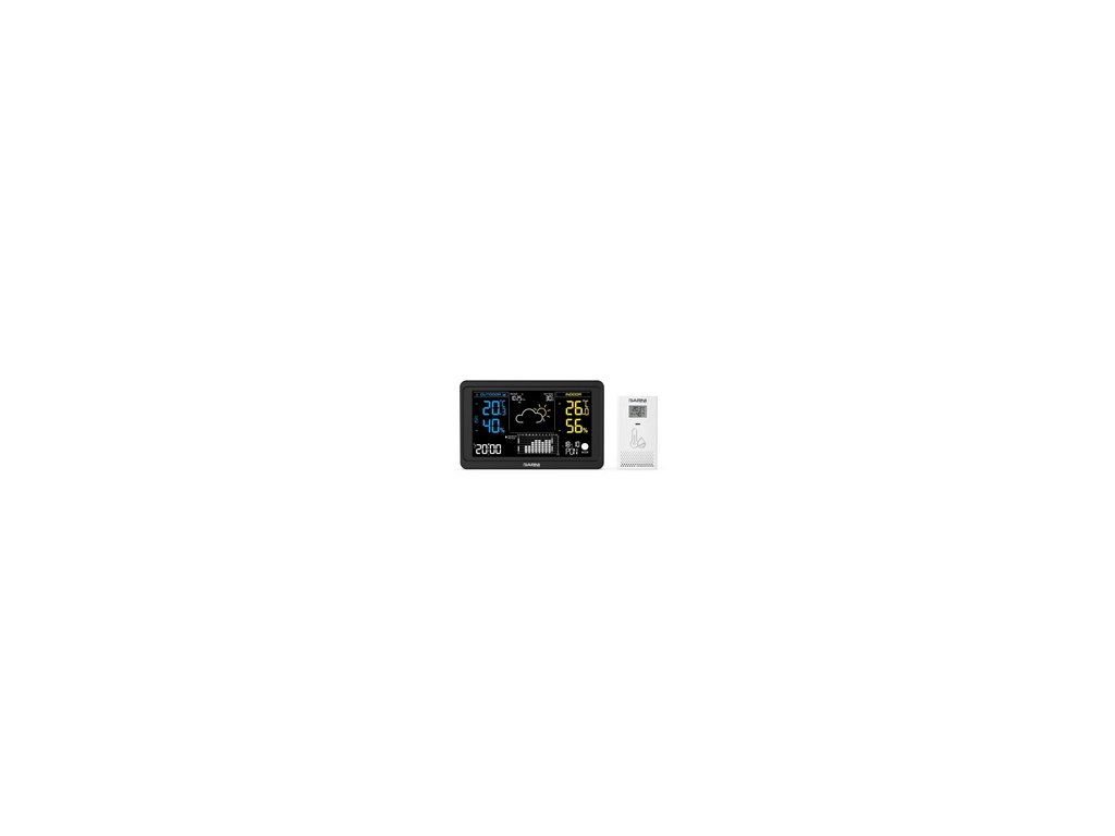 Přesná meteorologická stanice s inverzním barevným VA displejem s časem a datem řízenými rádiovým signálem DCF-77, budíkem, měřením vnitřní teploty, relativní vlhkosti, barometrického tlaku a bezdrátovým čidlem pro měření vnější teploty a relativní vlhkosti. Pro dosažení vysoké přesnosti měření teploty a relativní vlhkosti jsou použita špičková čidla švýcarské značky SENSIRION