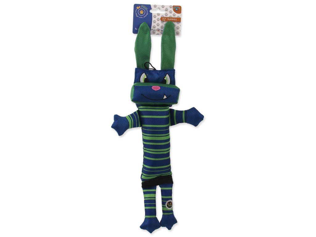 - Hračka má rozvolněné části (uši, ruce, nohy), které vybízí štěně k aktivitě a podporuje v něm lovecký pud.