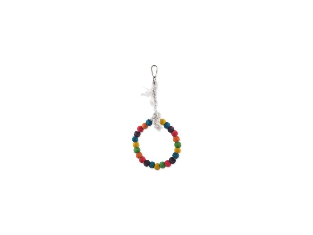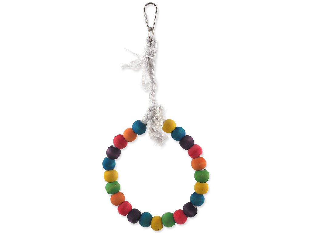 Hračka Bird Jewel houpačka dřevěná s lanem barevná, kruh 15cm