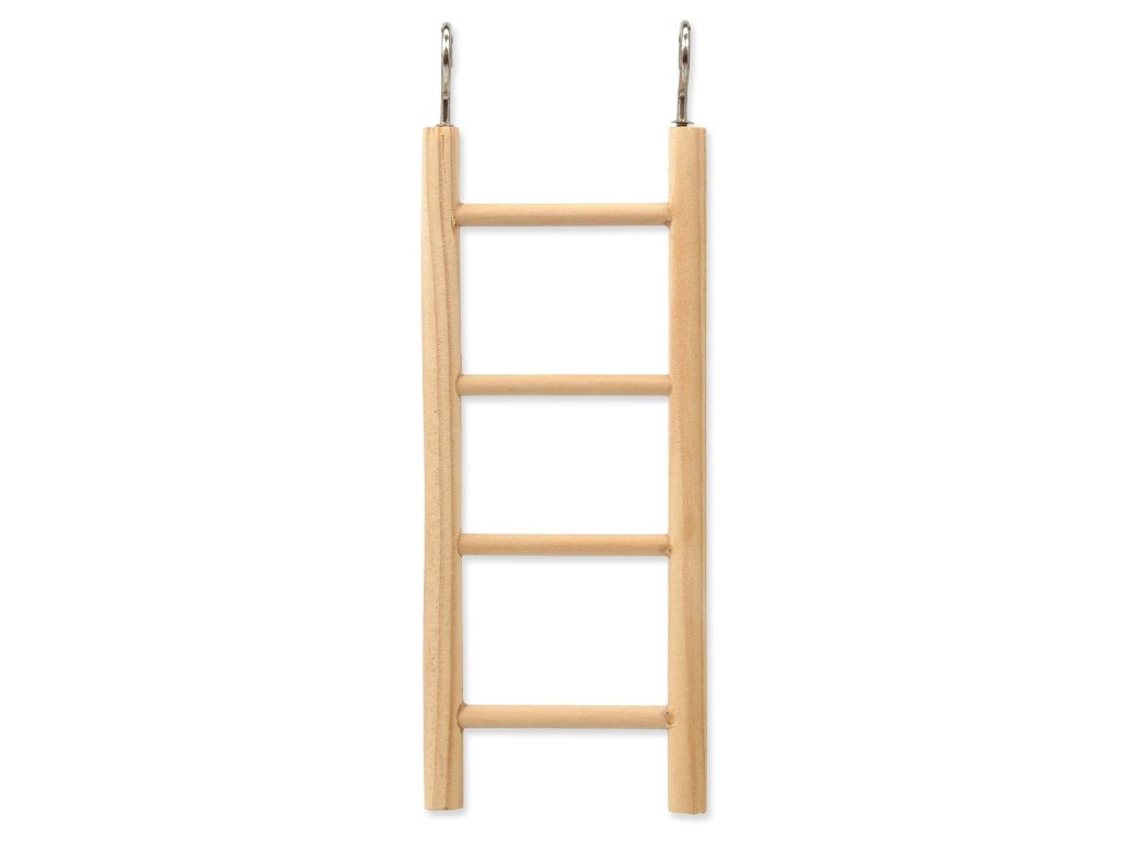 Žebřík s kovovým úchytem a 4 příčkami k zavěšení do klece.