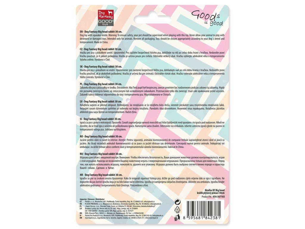 Hračka Dog Fantasy Big head králík plyšový pískací 30cm