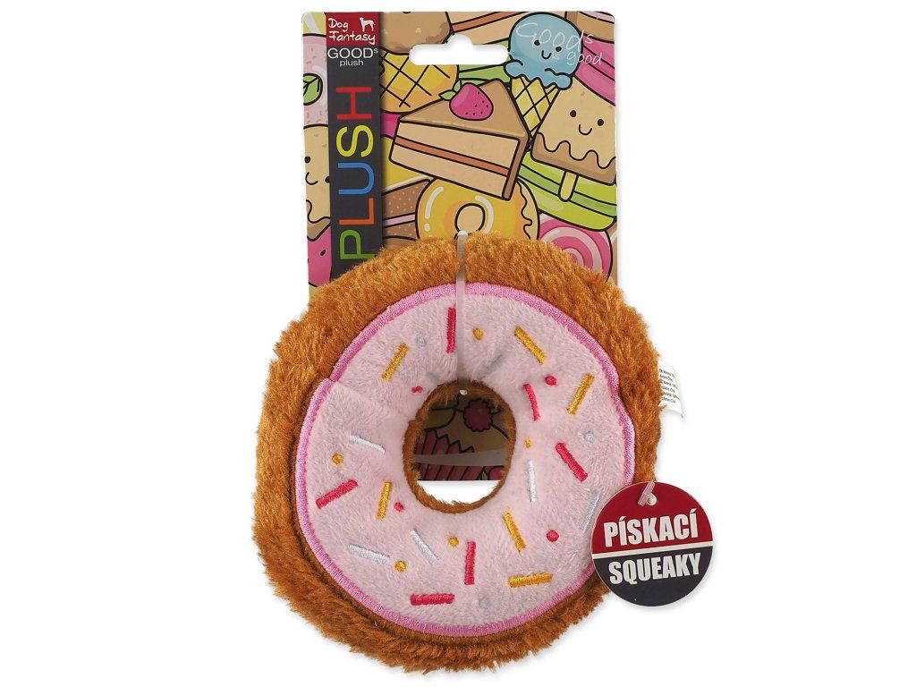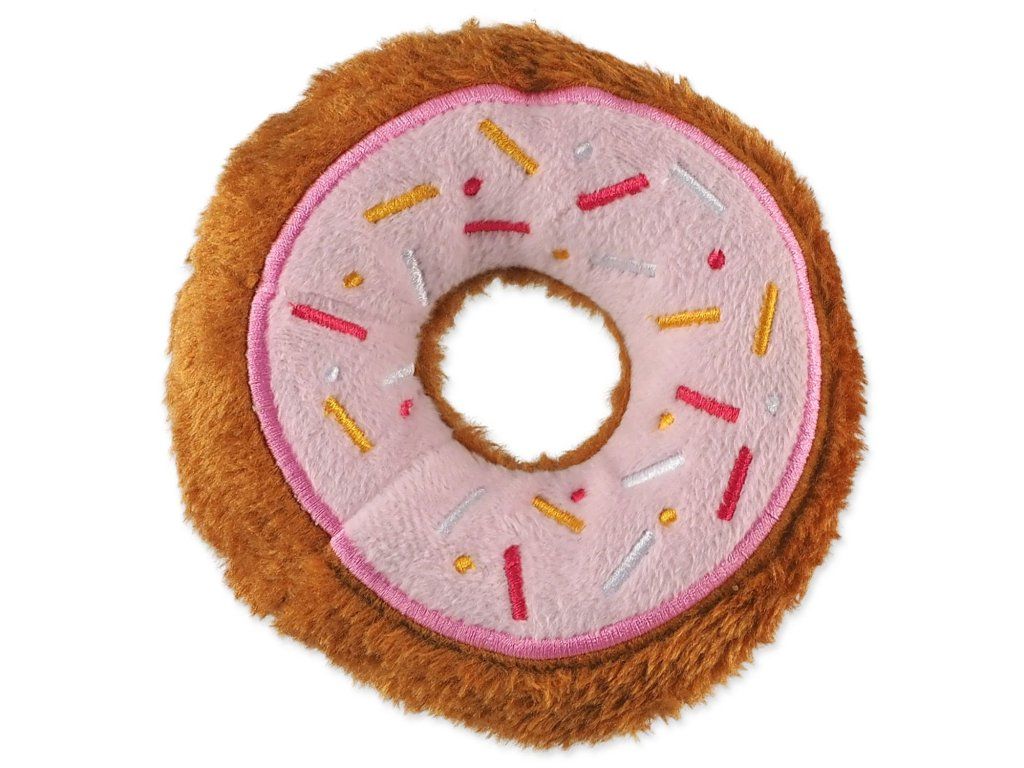 Hračka z jemného plyše, který je příjemný na dotek a dobře padne do psí tlamy. Při stlačení hračka píská. Lákavý donut, který bez obav můžete svému psovi dopřát.