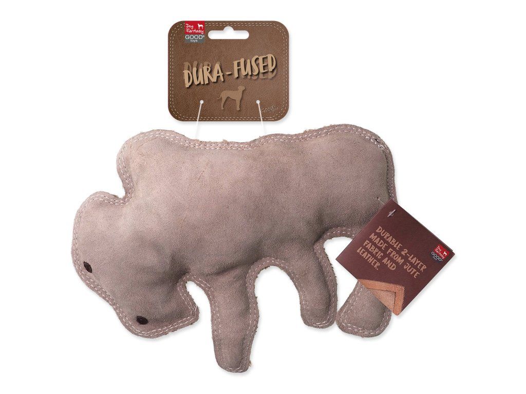 Hračka Dog Fantasy Dura-fused bizon pískací, kůže a juta 28cm