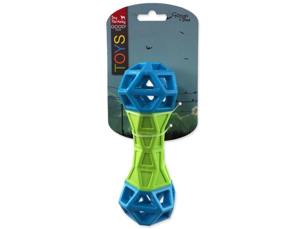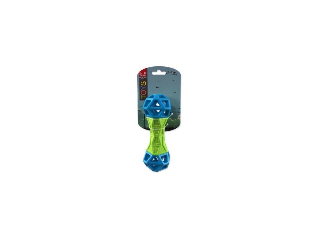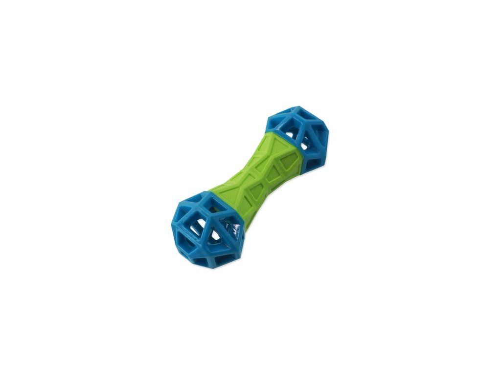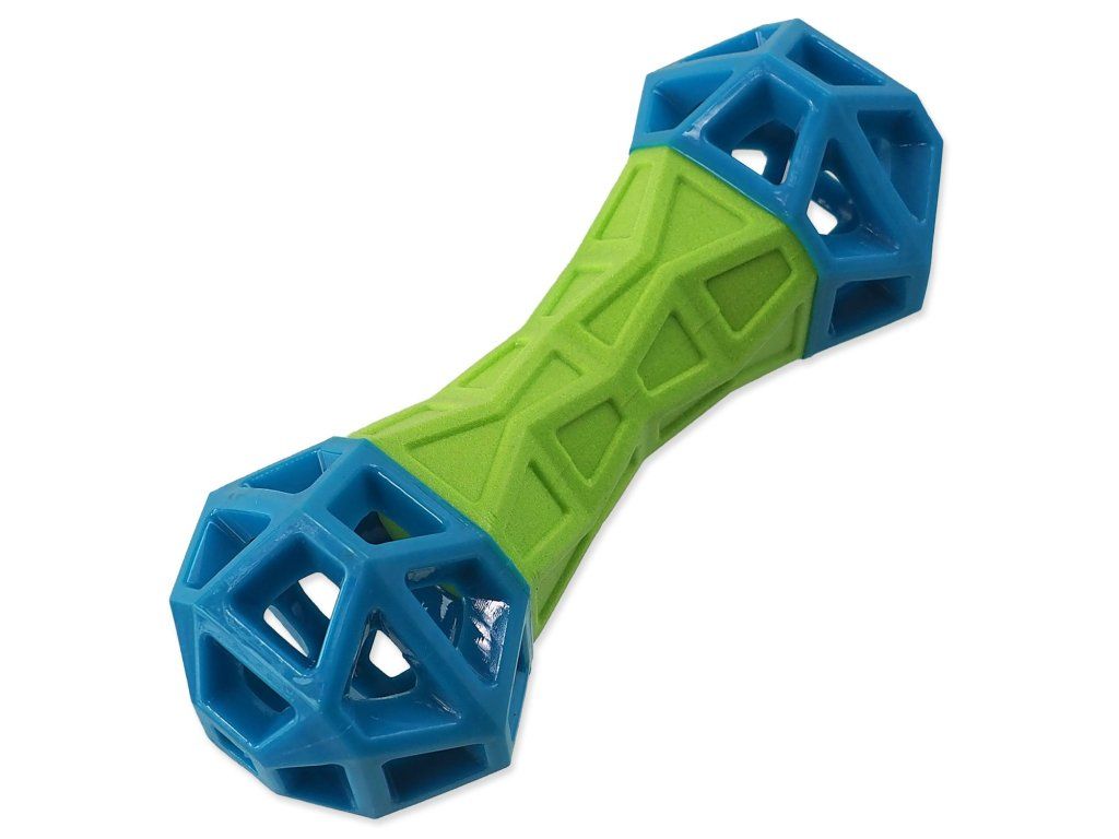 Hračka Dog Fantasy Kost s geometrickými obrazci pískací zeleno-modrá 18x5,8x5,8cm