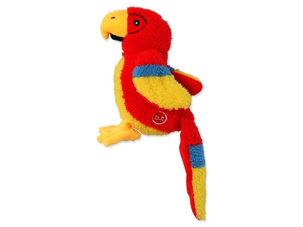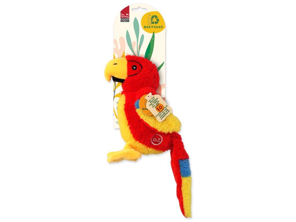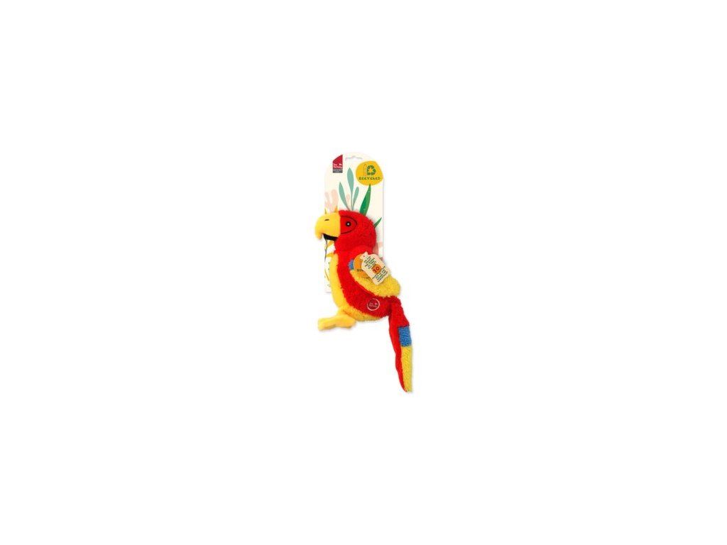 Hračka Dog Fantasy Recycled Toy papoušek pískací se šustícím ocasem 23cm