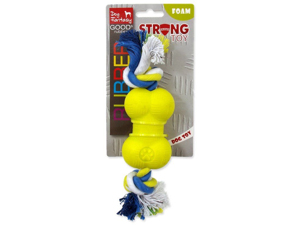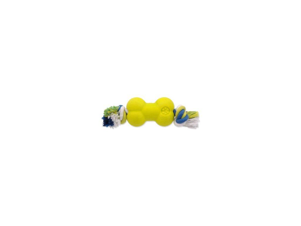 Hračka Dog Fantasy STRONG FOAMED kost guma s provazem 8,8cm