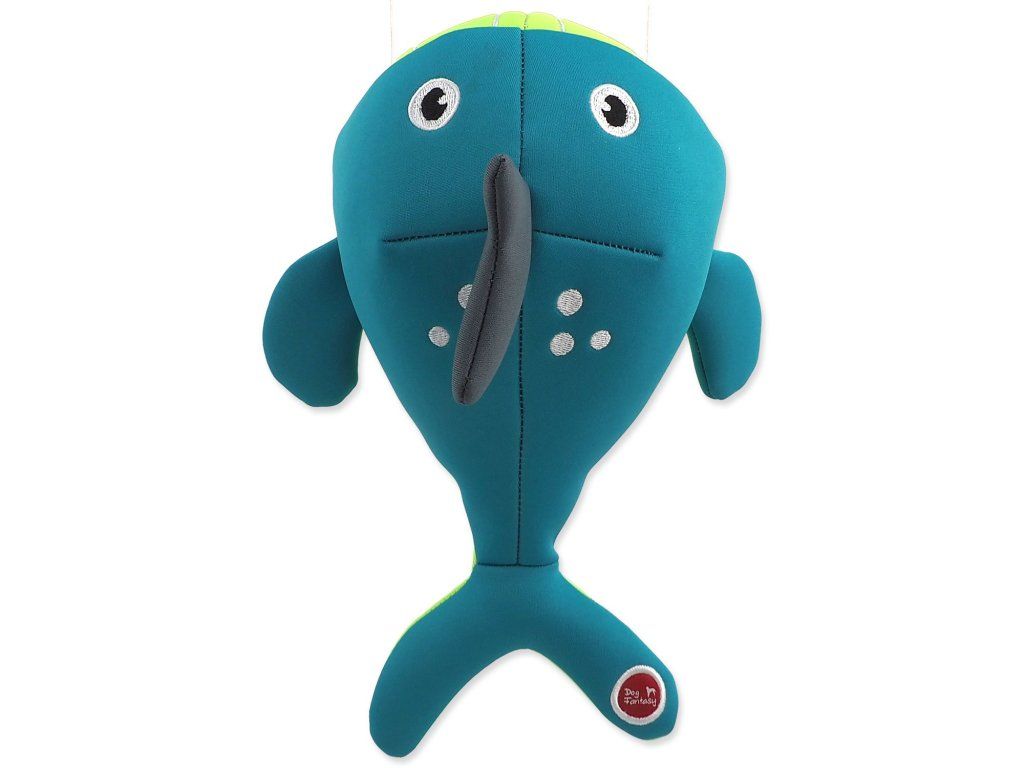 Hračka Dog Fantasy Water Float velryba pískací a plovoucí tyrkysová 28cm