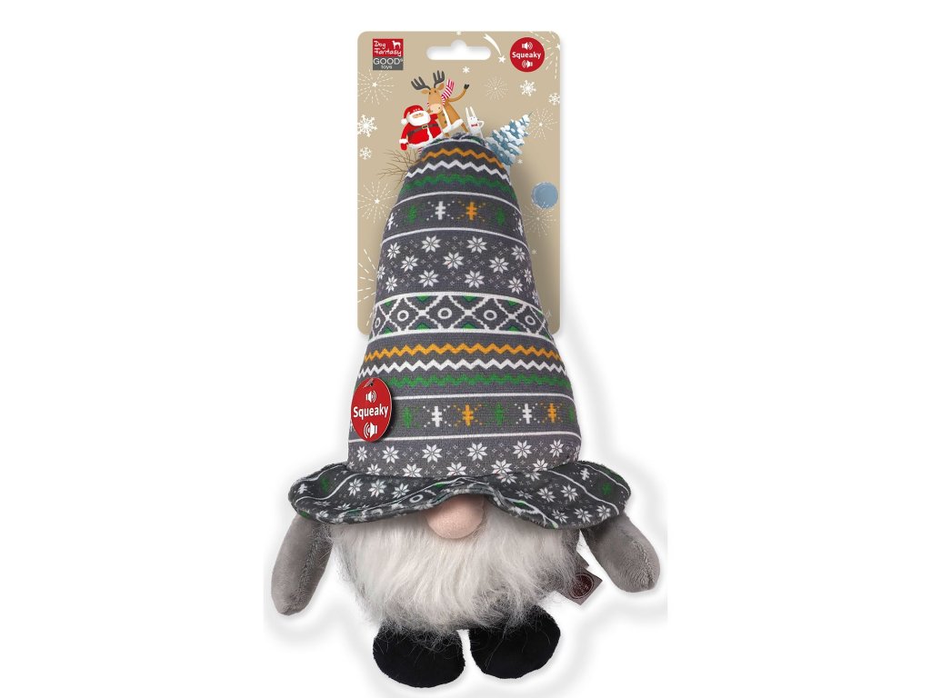 Hračka Dog Fantasy Winter Tale trpaslík pískací šedivý 30cm