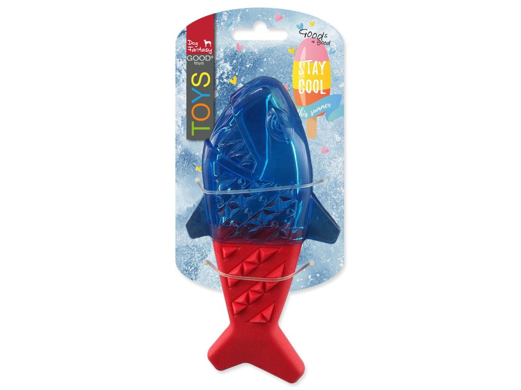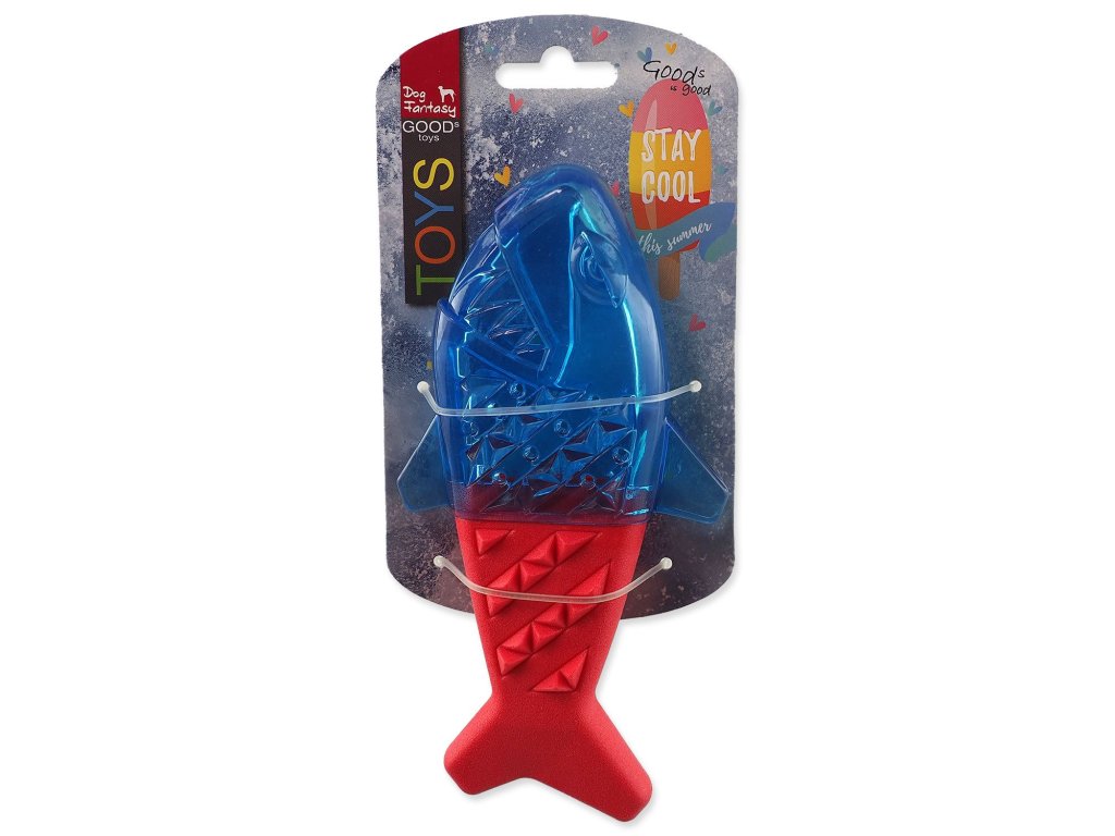 Hračka Dog Fantasy žralok chladící červeno-modrá 18x9x4cm
