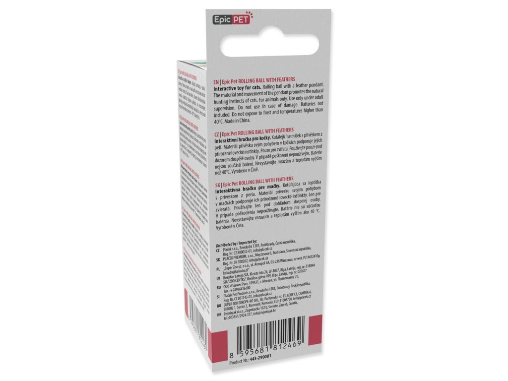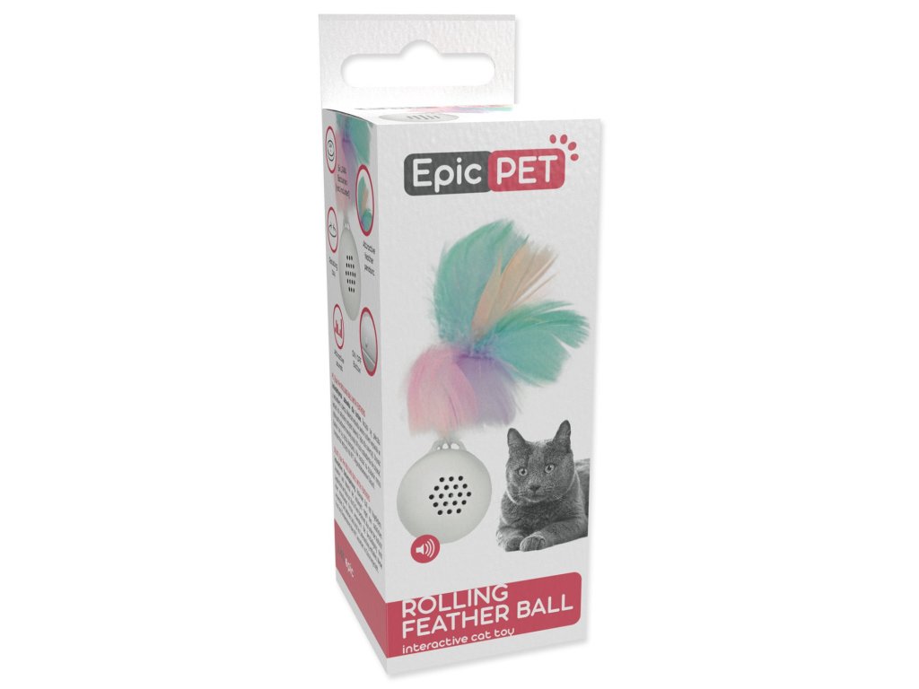 Míček s přívěskem z peří je skvělou interaktivní hračkou pro kočky.