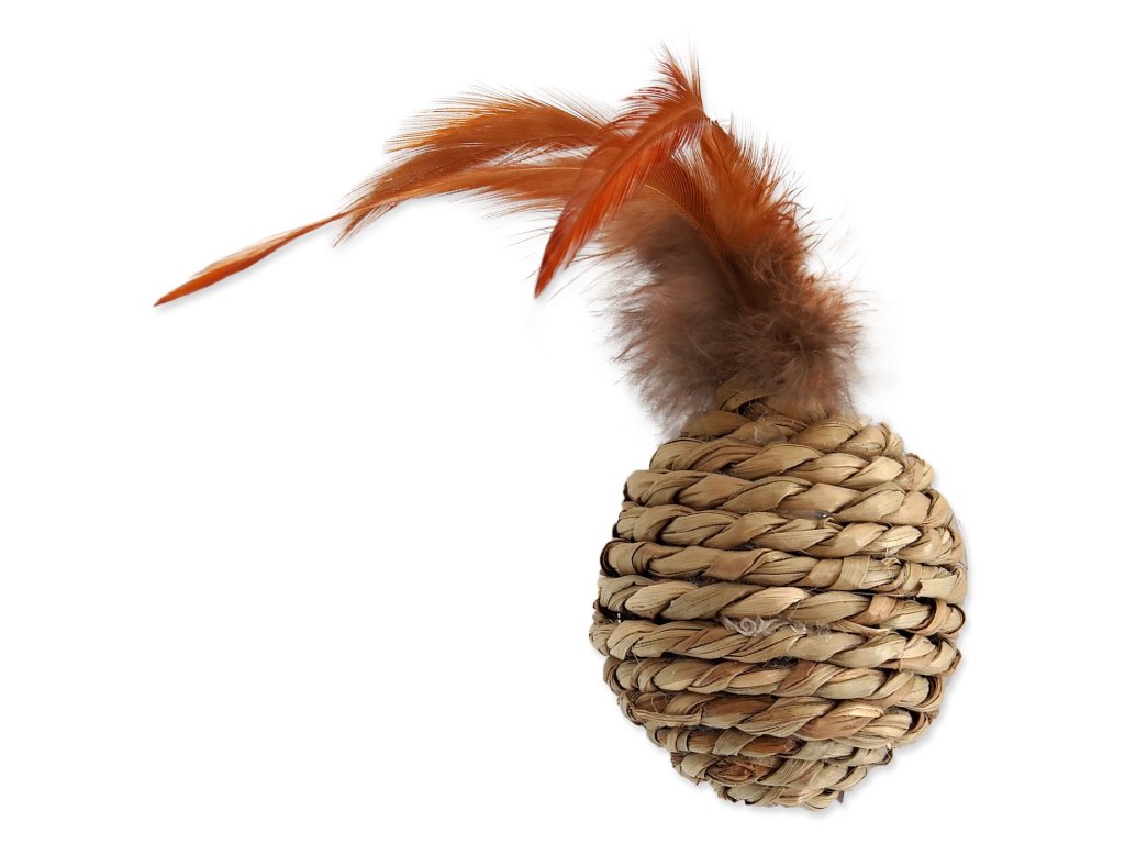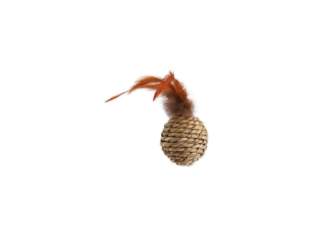 Atraktivní hračka pro kočky z mořské trávy, s pírky.