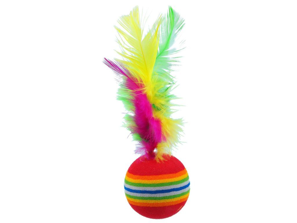 Pěnový míček s pírky. Hračka, které Vaše kočka neodolá. Pírka lákají k aktivní hře.