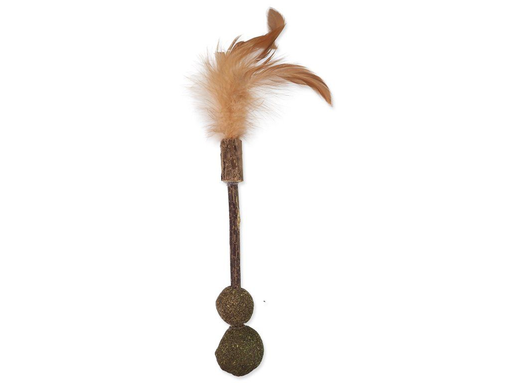 Hračka Magic Cat Natural Fun dřívko s přírodními pírky a zelenými koulemi 18cm