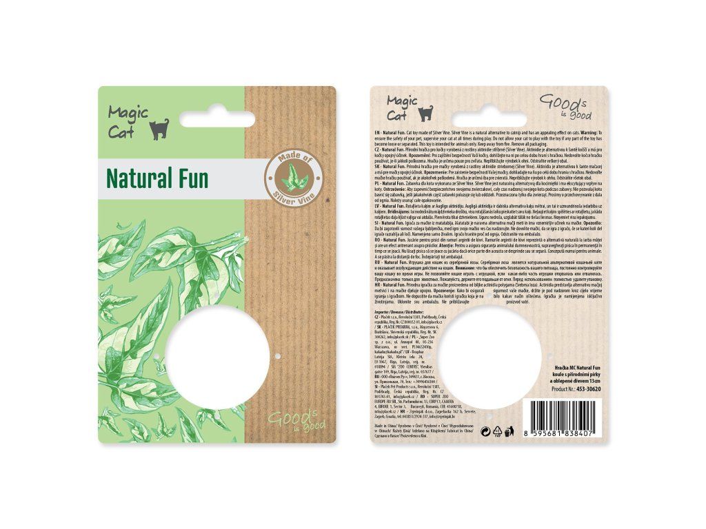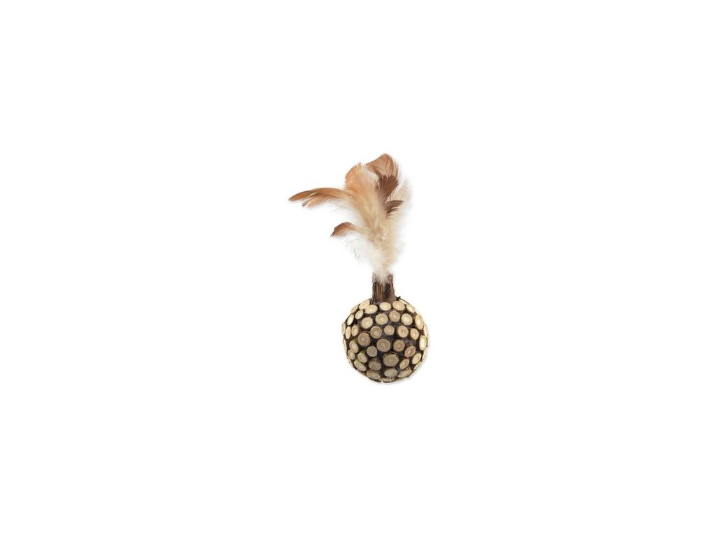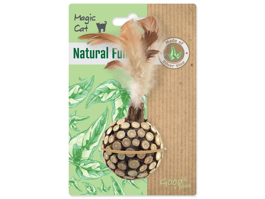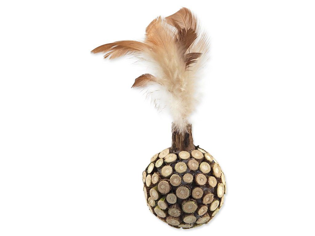 Hračka Magic Cat Natural Fun koule s přírodními pírky a oblepené dřevem 13cm