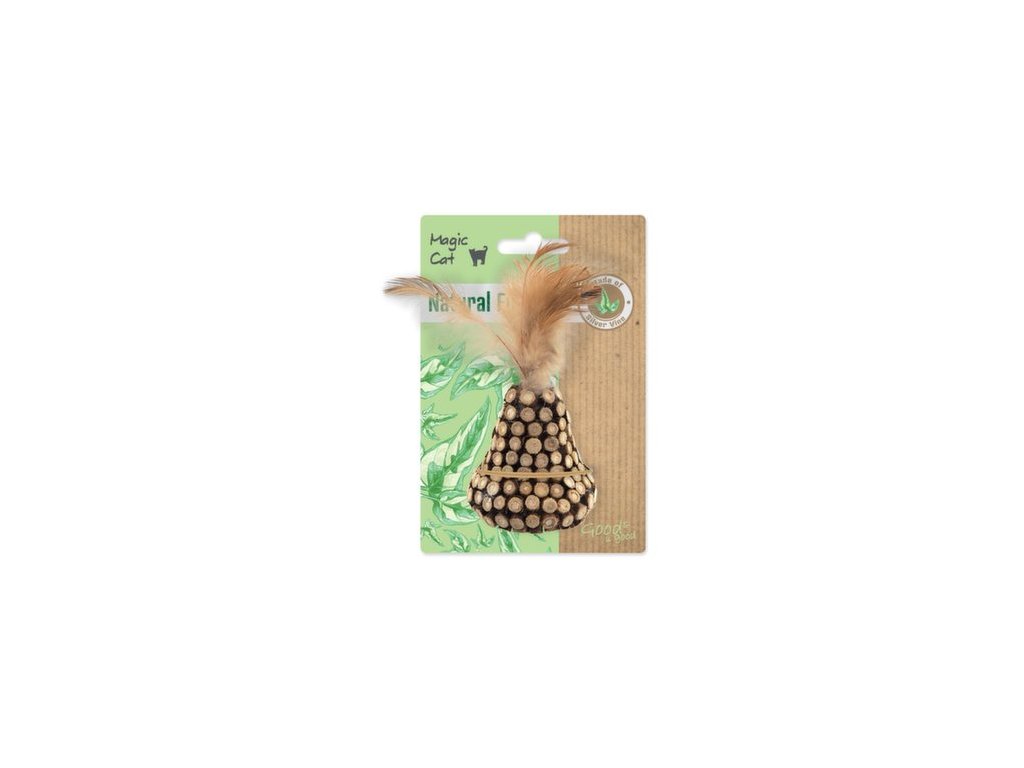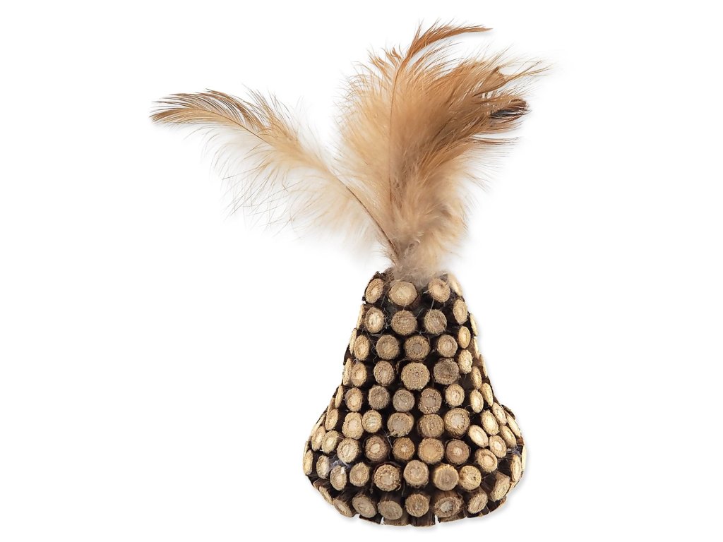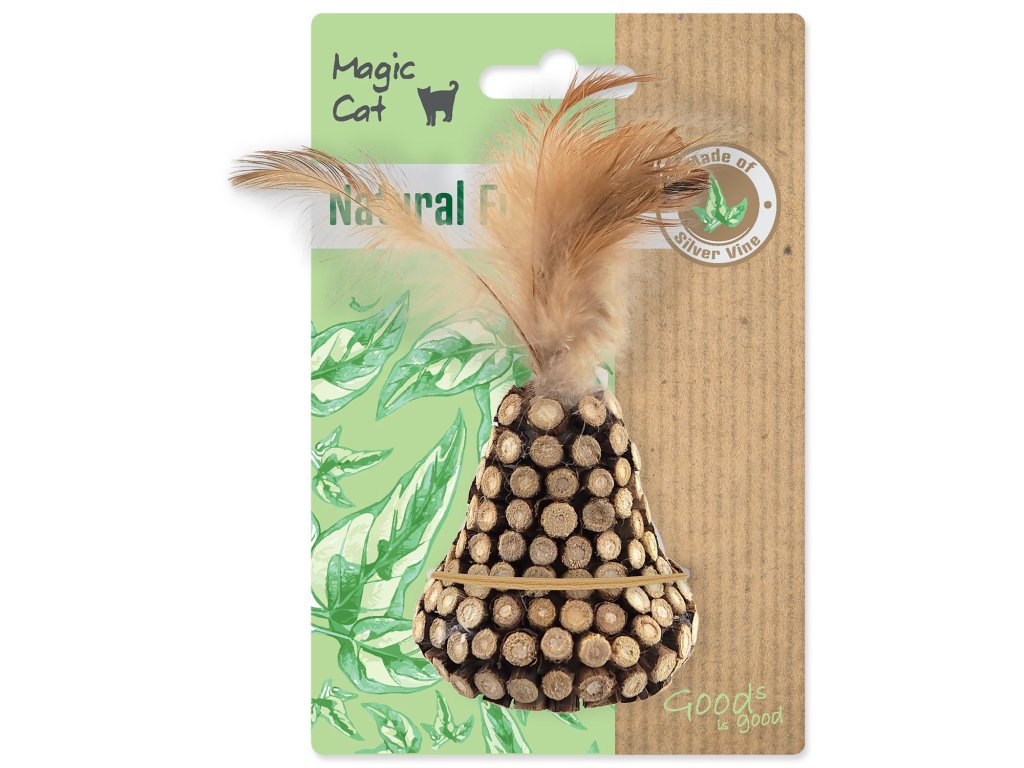 Hračka Magic Cat Natural Fun kužel s přírodními pírky a oblepené dřevem 13cm