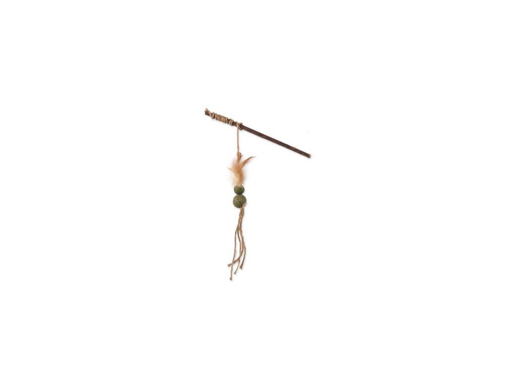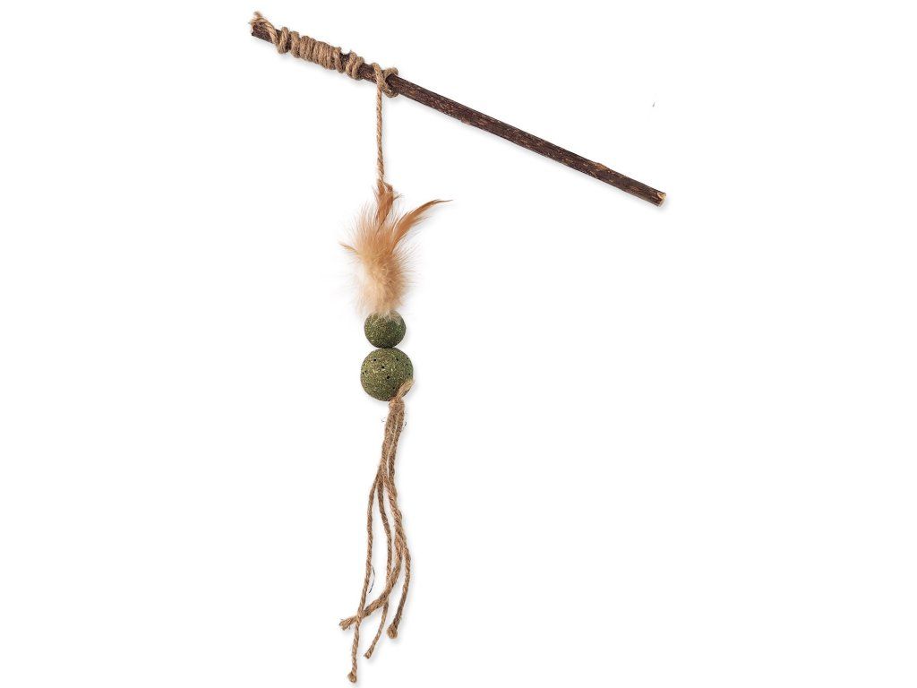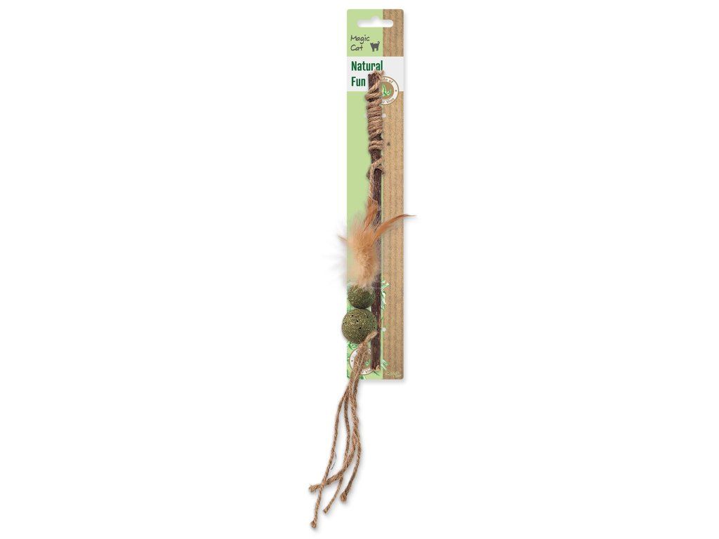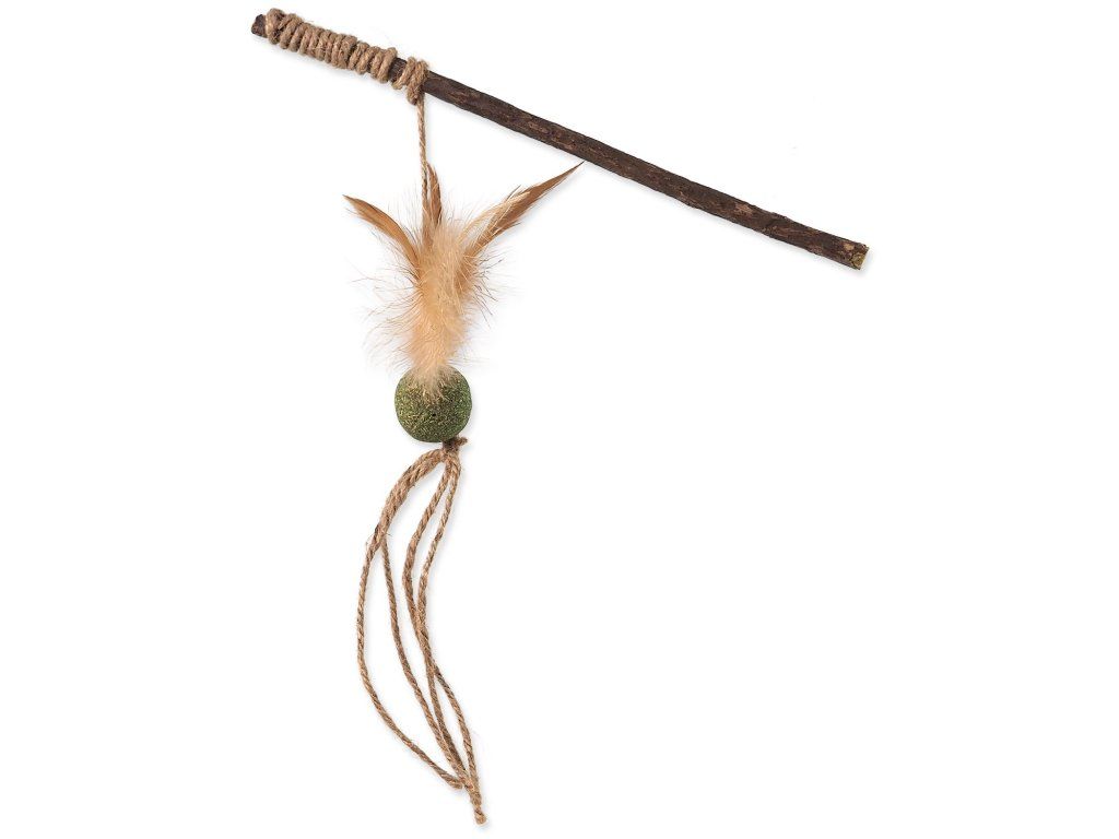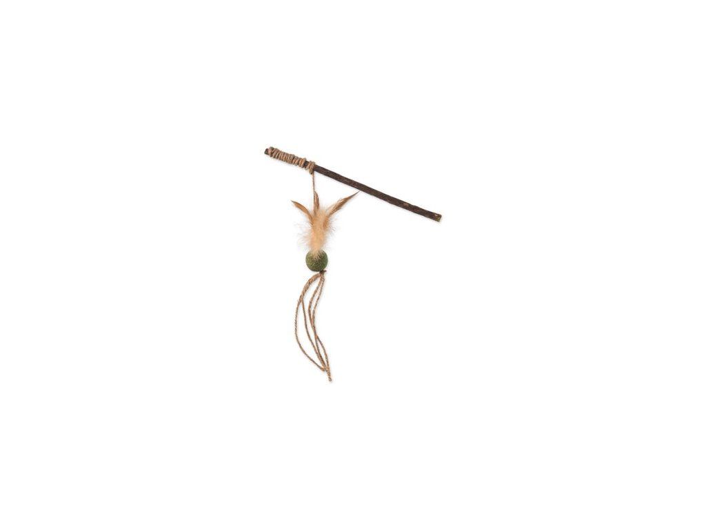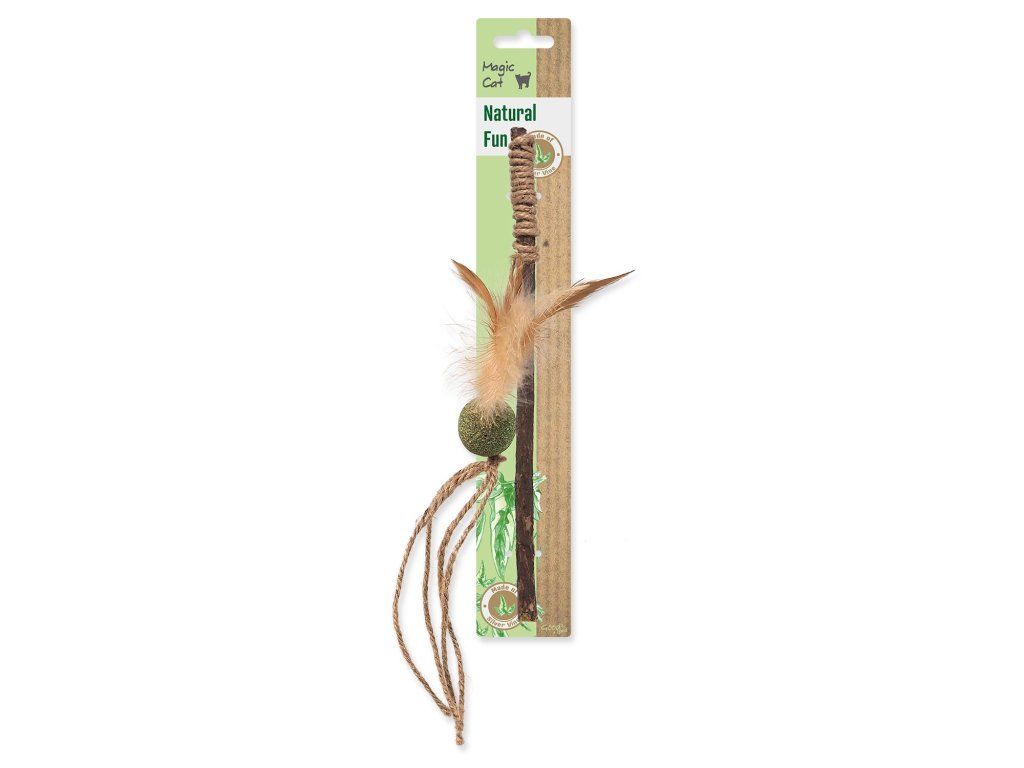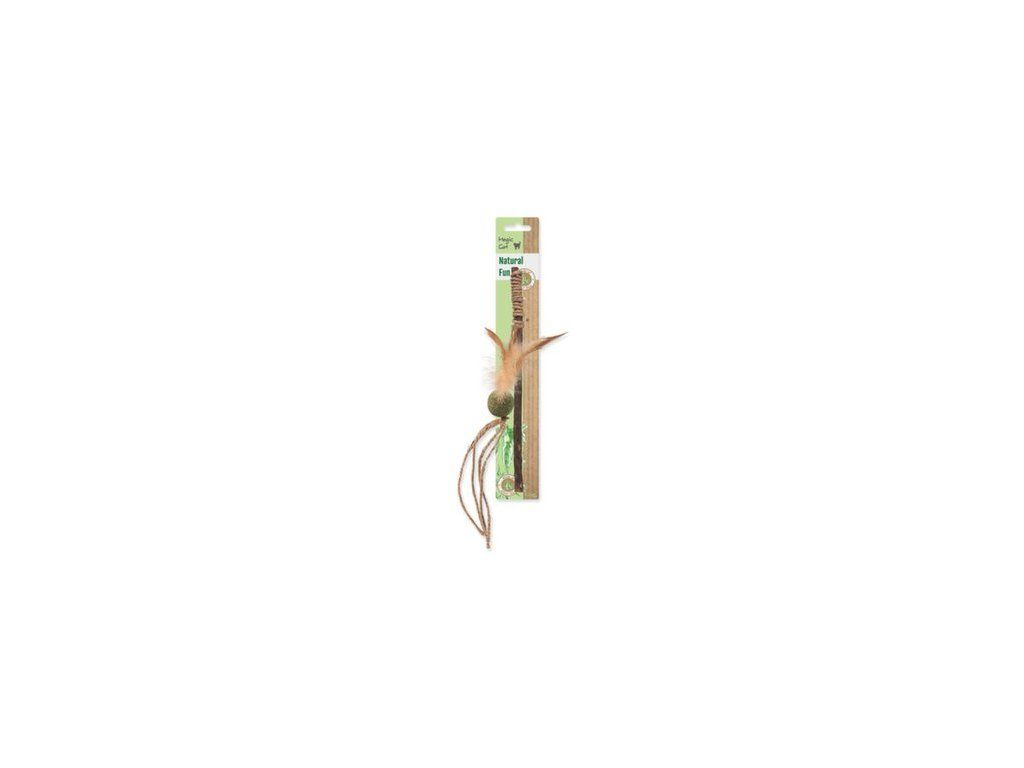 Hračka Magic Cat Natural Fun šidítko s přírodními pírky a provázky mix 25cm