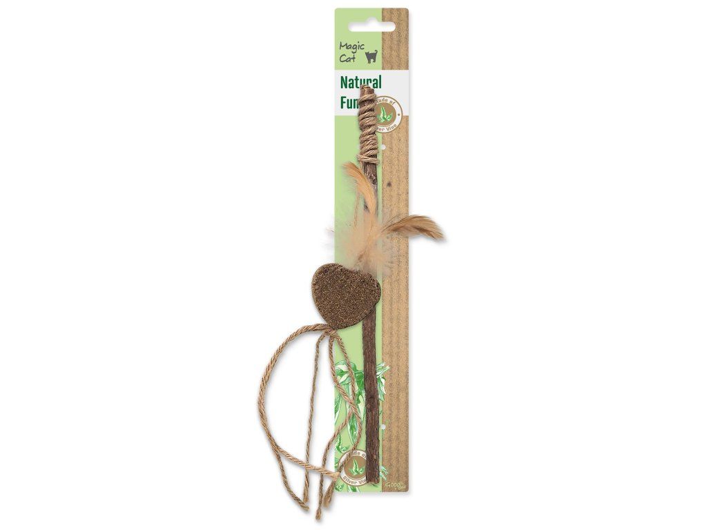 Hračka Magic Cat Natural Fun šidítko srdce s přírodními pírky a provázky 25cm