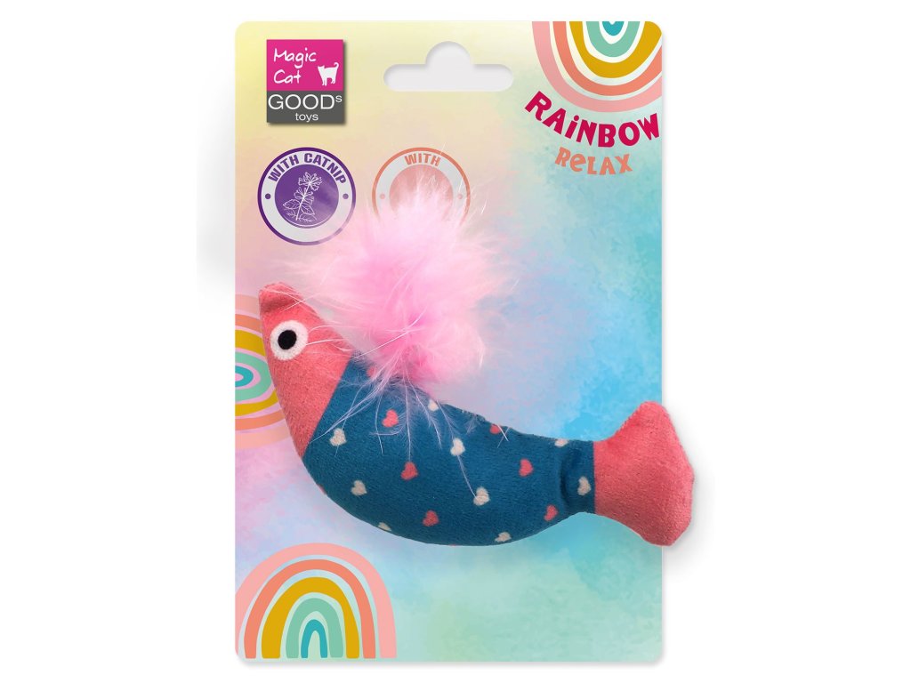 Hračka Magic Cat Rainbow Relax ryba s pírkem a šantou kočičí modro - růžová 10cm