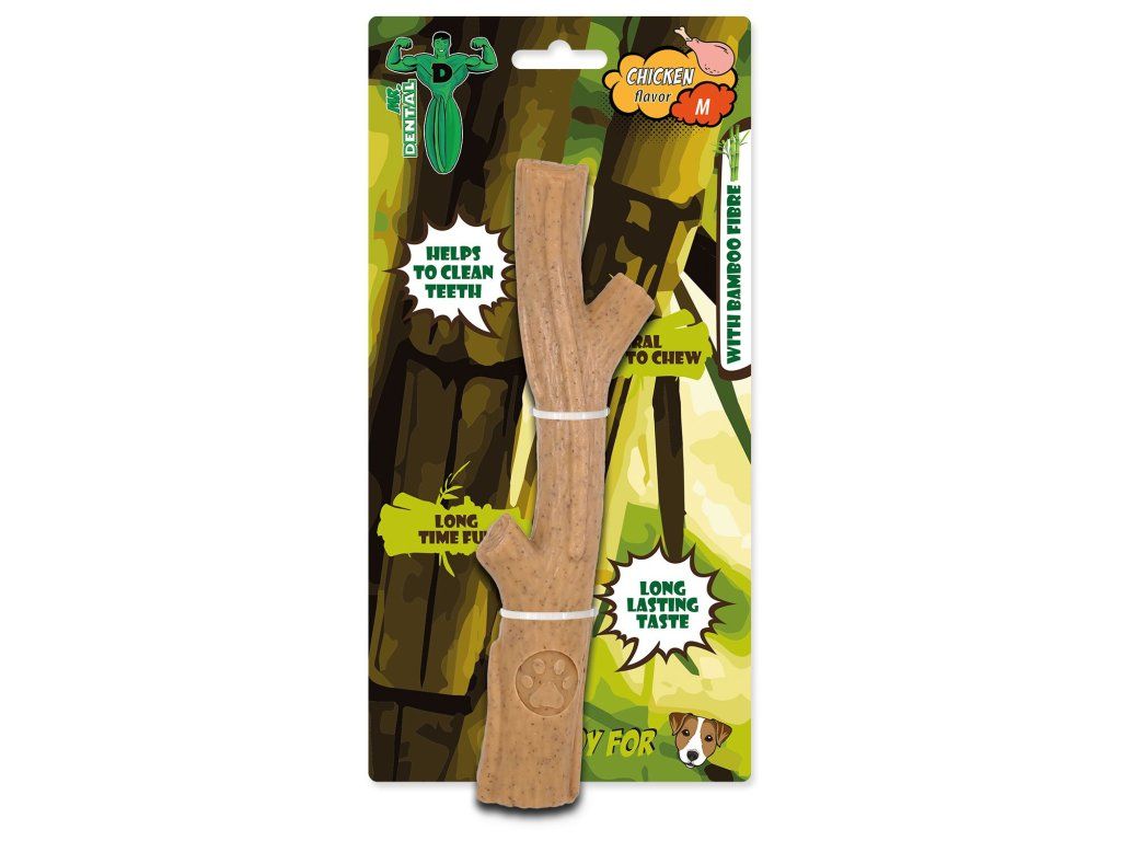Žvýkací hračka Mr. Dental Bambone ve tvaru klacku s kuřecí vůní.