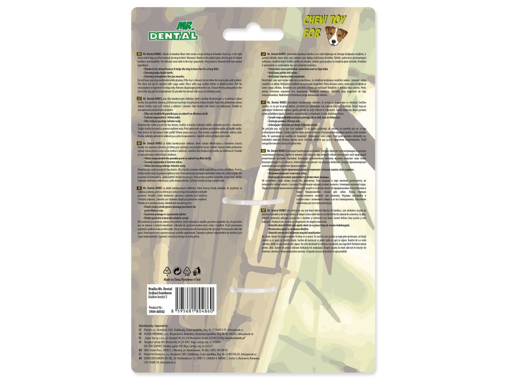 Hračky Mr. Dental Bambones jsou zábavou pro všechny velikosti a plemena psů, která vyhledávají zábavu v podobě žvýkání. Díky dostupnosti v několika velikostech (S, M, L, S/M, L/XL), tvarech (kladivo, klacek, růžek, ypsilon a kost) a vůních (kuře, hovězí a slanina) si na své přijde opravdu každý pejsek.