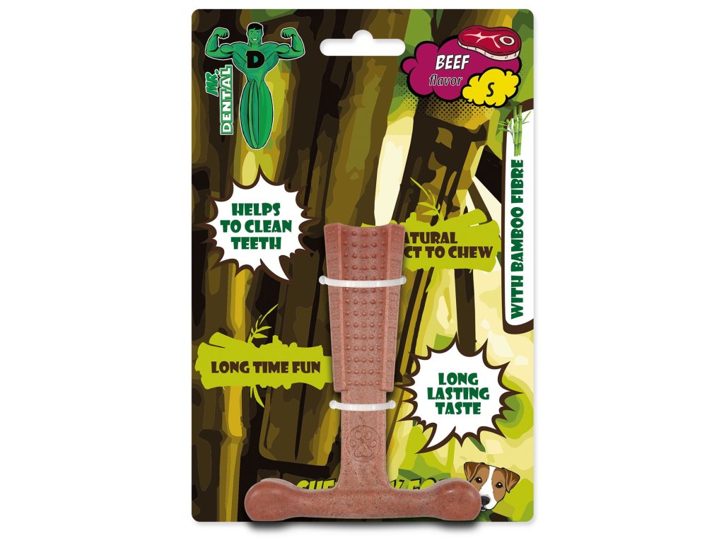 Žvýkací hračka Mr. Dental Bambone ve tvaru kladiva s hovězí vůní.