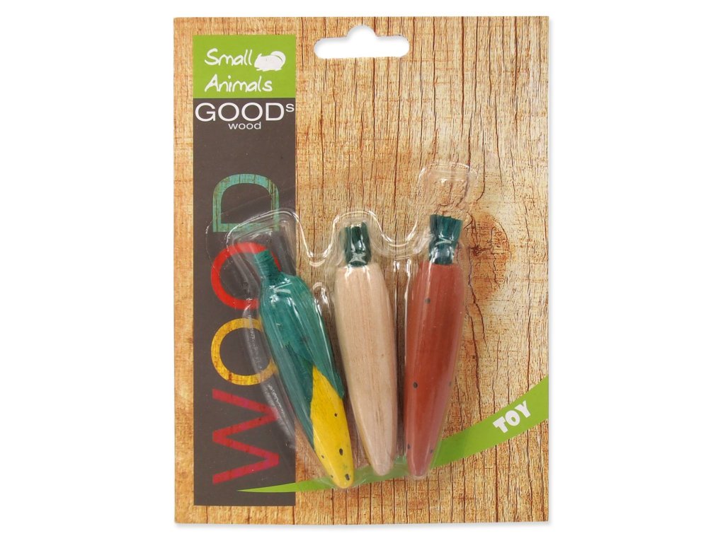 Dřevěná zelenina ke hlodání.
