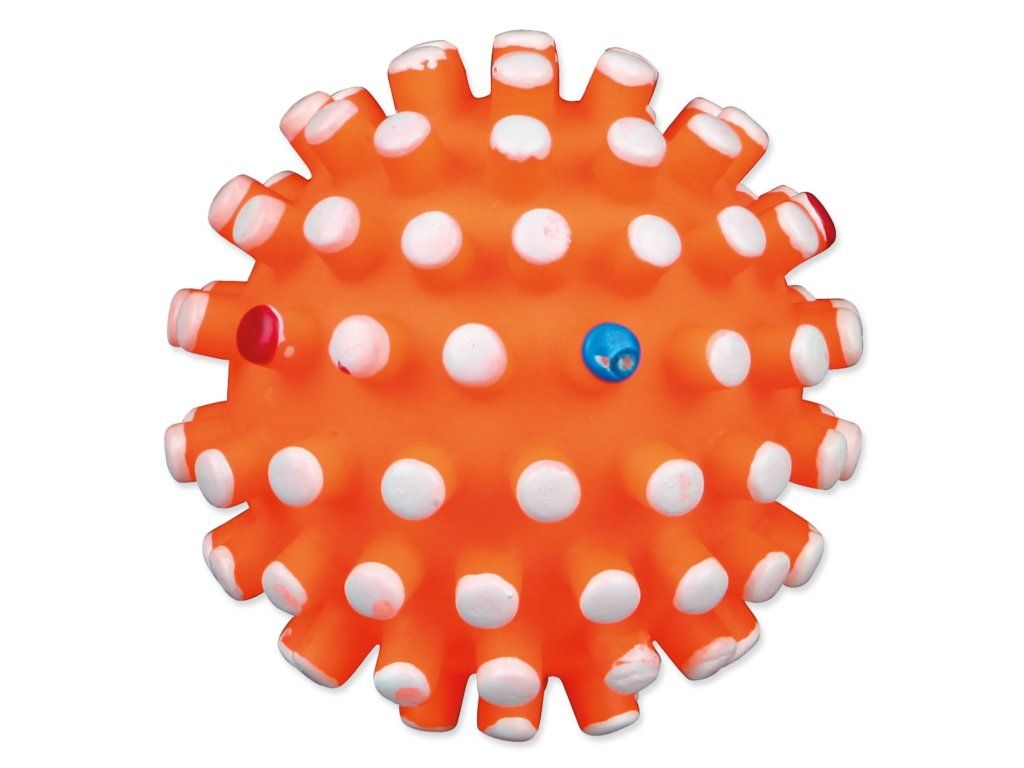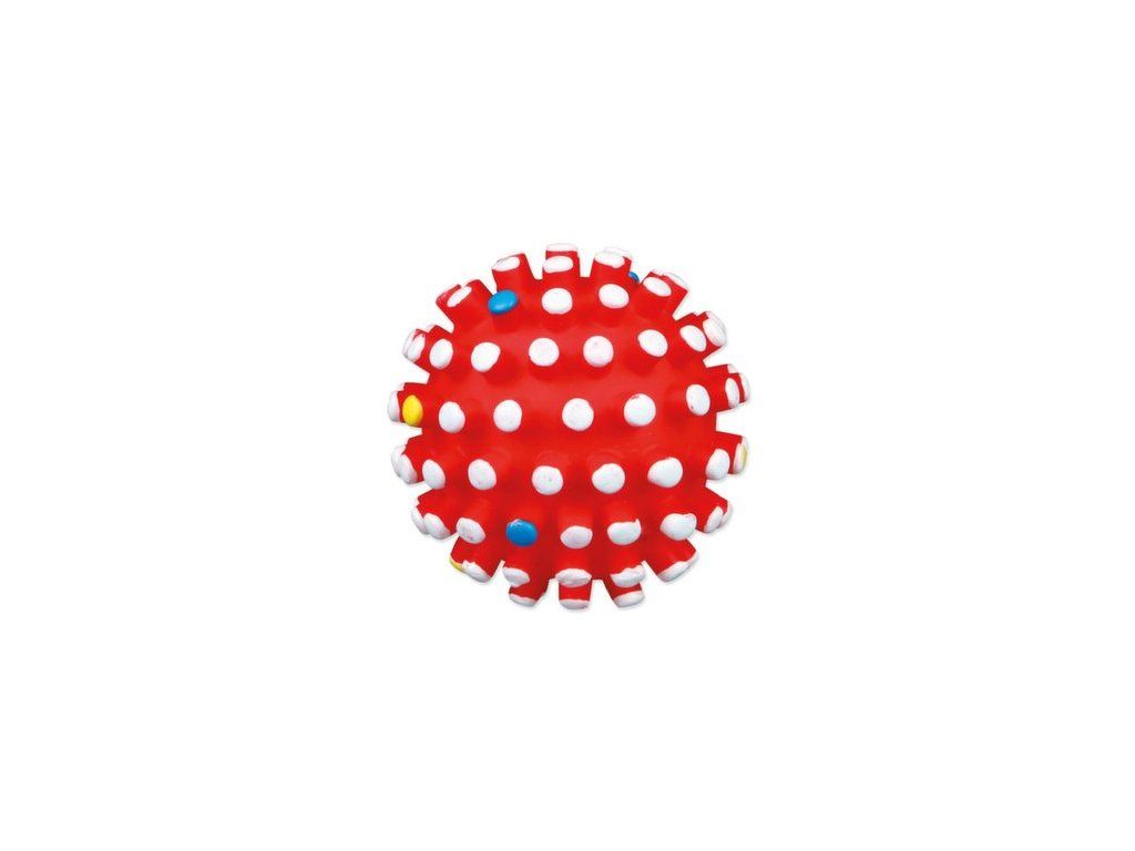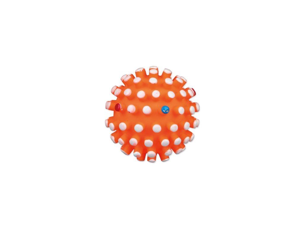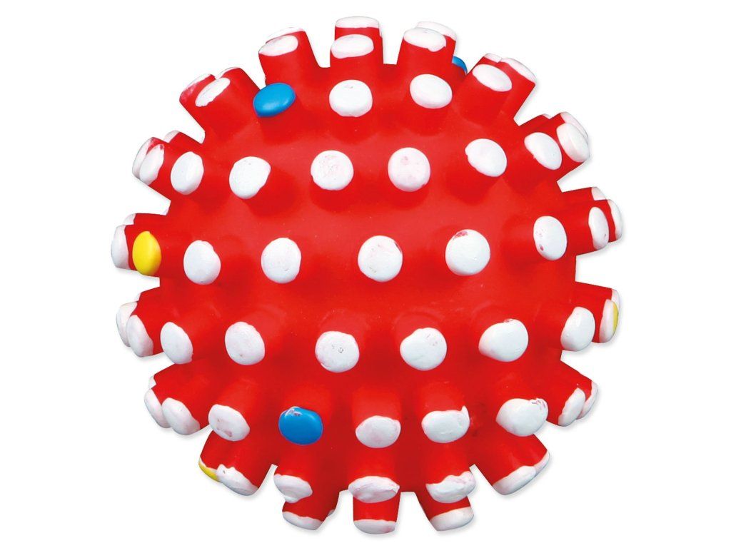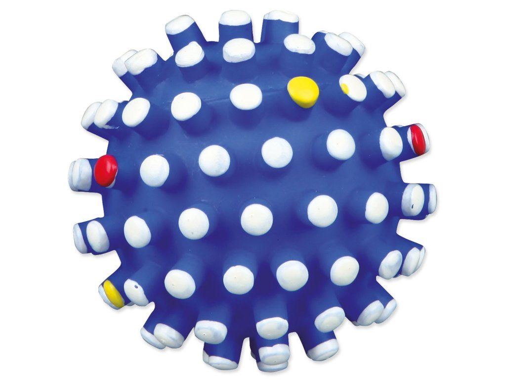Hračka míček s bodlinami se zvukem pro psy. Tato hračka zabaví psa na dlouhou dobu. Míček je vyrobený z vinylu. Zvuk hračky bude psa neustále lákat ke hře. Bodlinky masírují dásně psa.