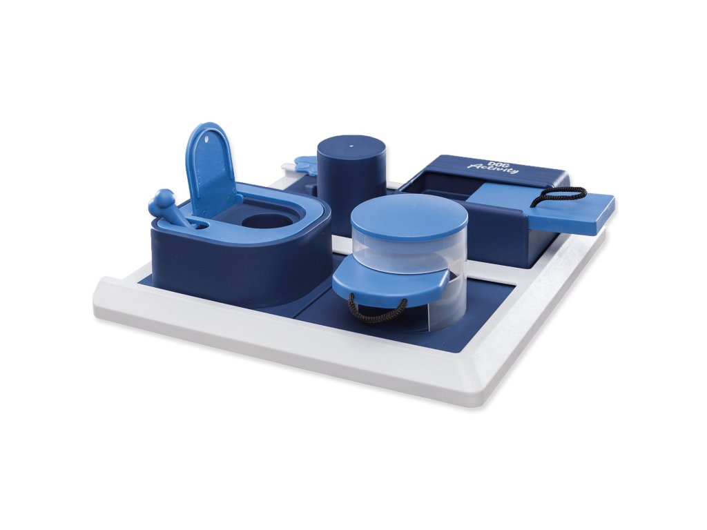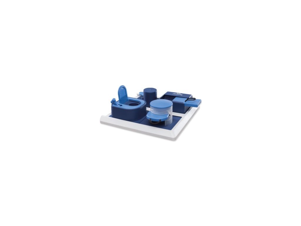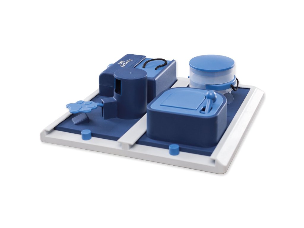 Schovejte granule nebo pamlsek do hračky a nechte psa si užít zábavu s hledáním. Pes může použít tlapu nebo čumák k posouvání plastových čtverců, jejich otevření nebo nadzvednutí částí hračky a získat tak pamlsek.