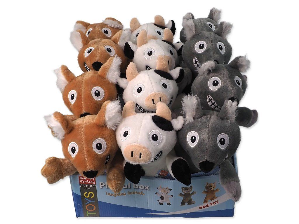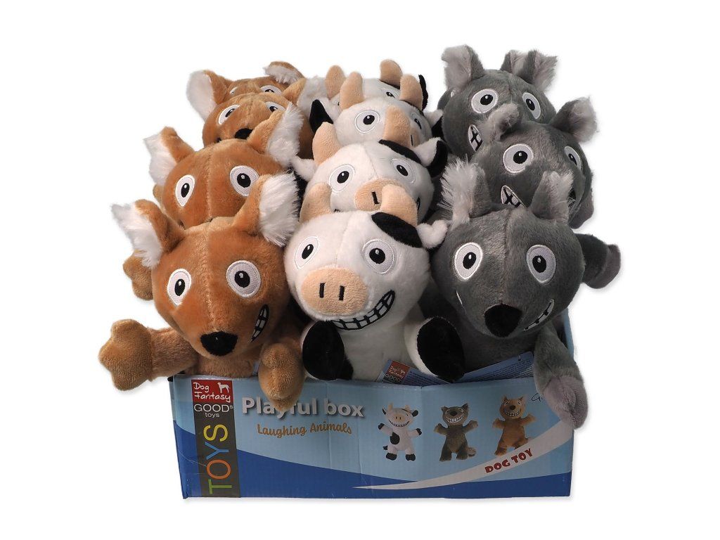 Hračky Dog Fantasy Playful Box Laughing zvířat pískací a šustící ocas mix 29cm 18ks