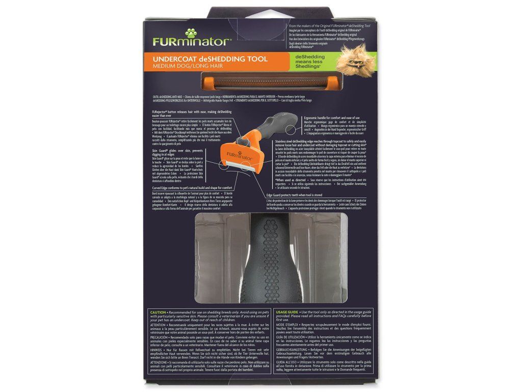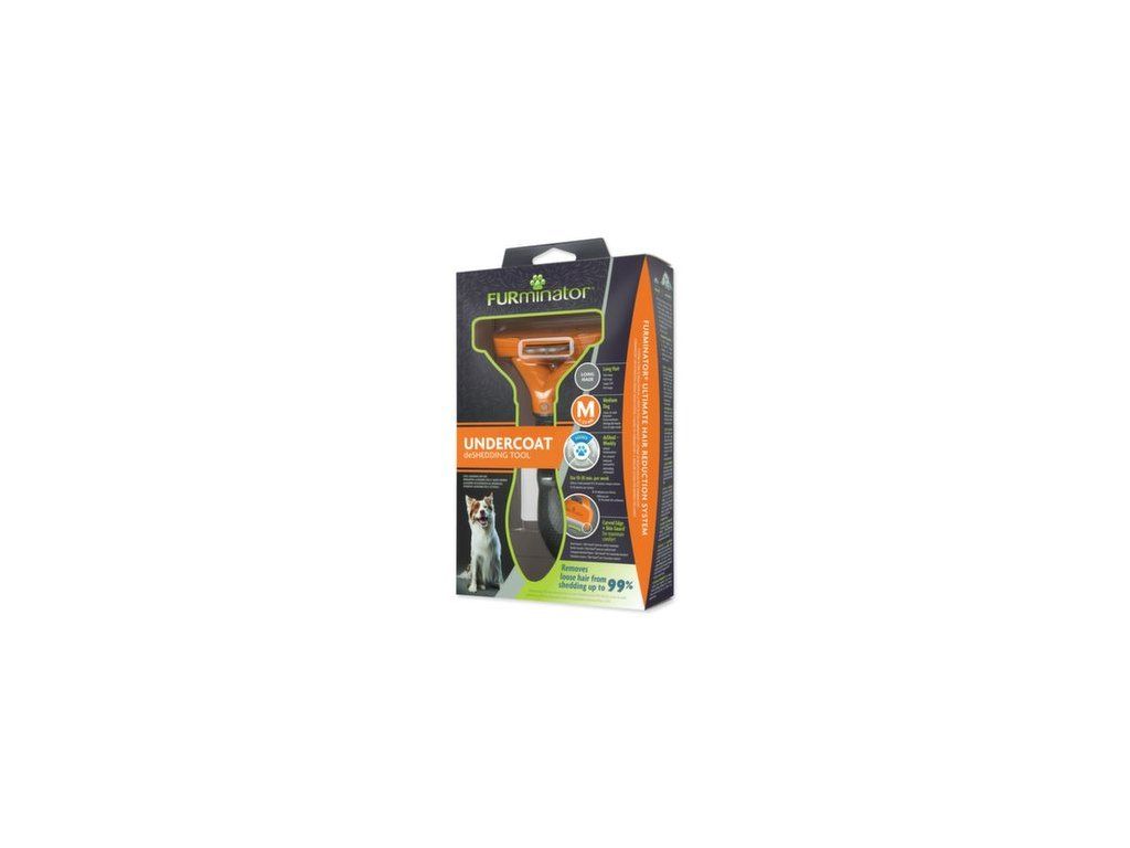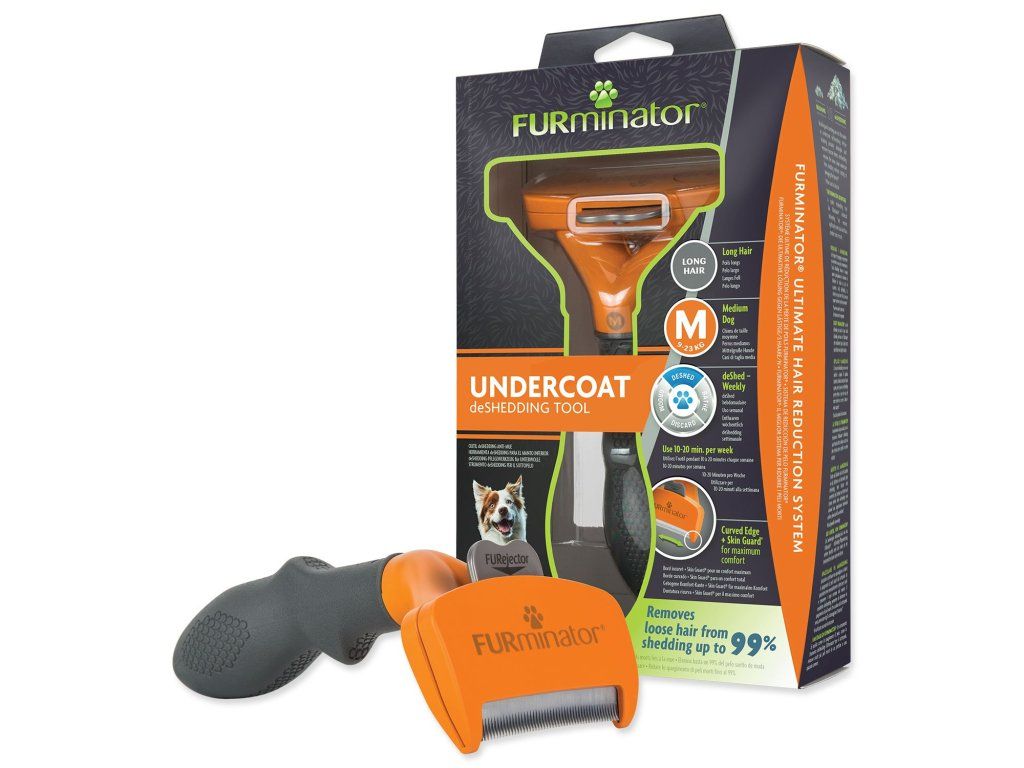 FURminator® hrablo k vyčesávání podsady pro psy středních plemen o hmotnosti do 9-23 kg s dlouhou srstí. Odstraňuje až 99 % uvolněných chlupů.