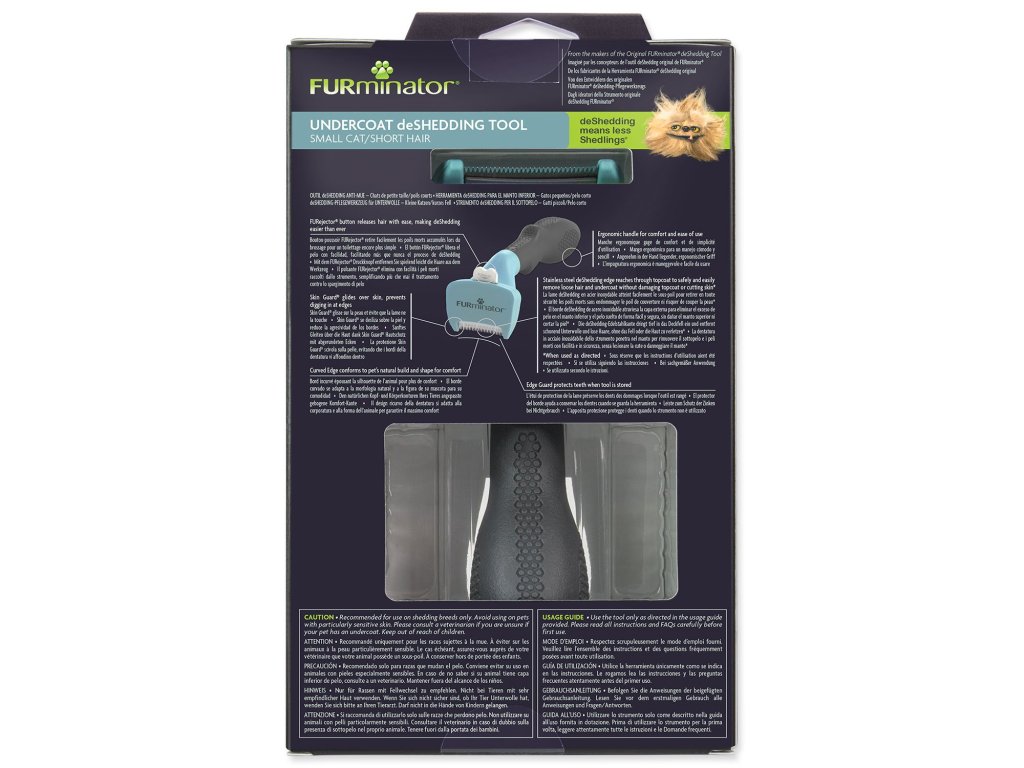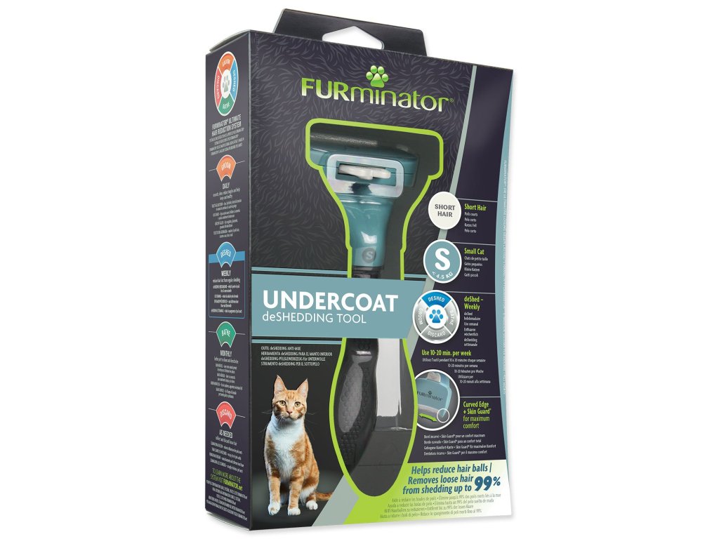 FURminator® hrablo k vyčesávání podsady pro krátkosrsté kočky malých plemen. Odstraňuje až 99 % uvolněných chlupů.