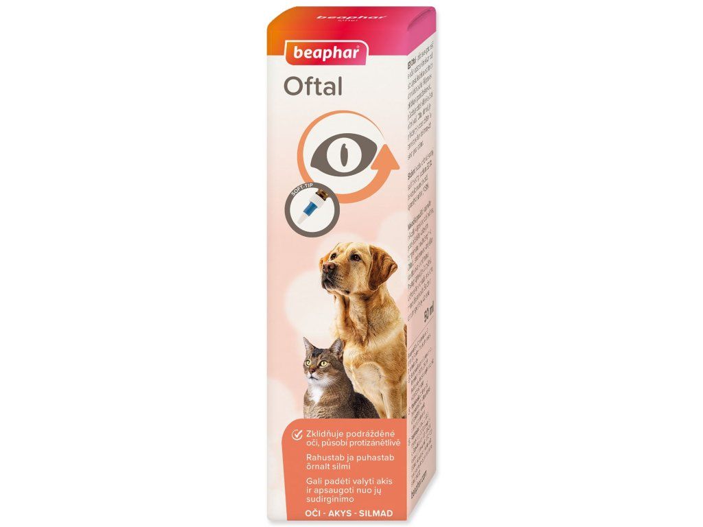 Návod k použití: Kápněte několik kapek do očí zvířete, poté očistěte vatovým tamponem navlhčeným v Oftalu směrem od vnějšího koutku oka k vnitřnímu.