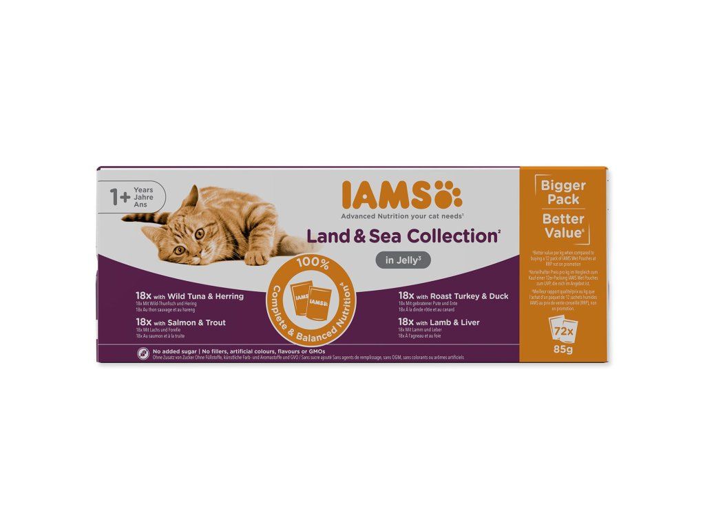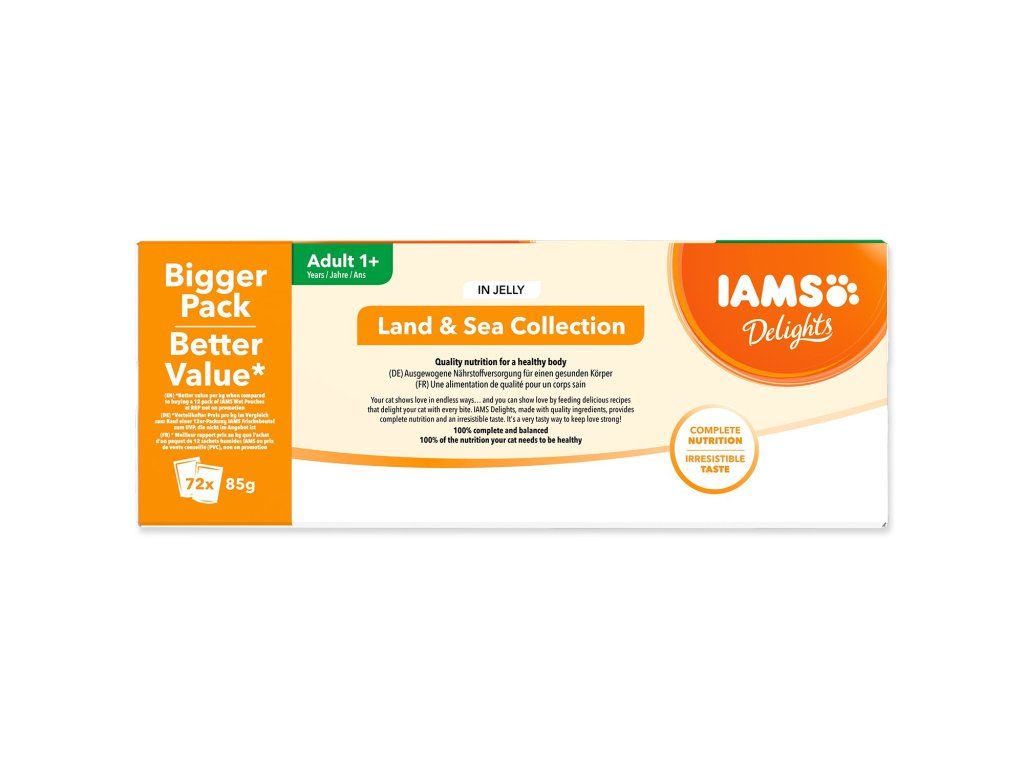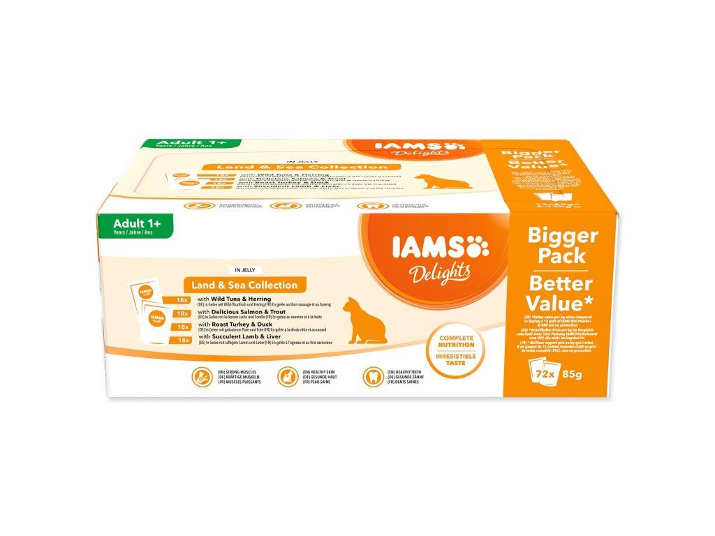 Kapsička IAMS Delights Adult mořské a suchozemské maso v želé multipack 6120g (72x85g)