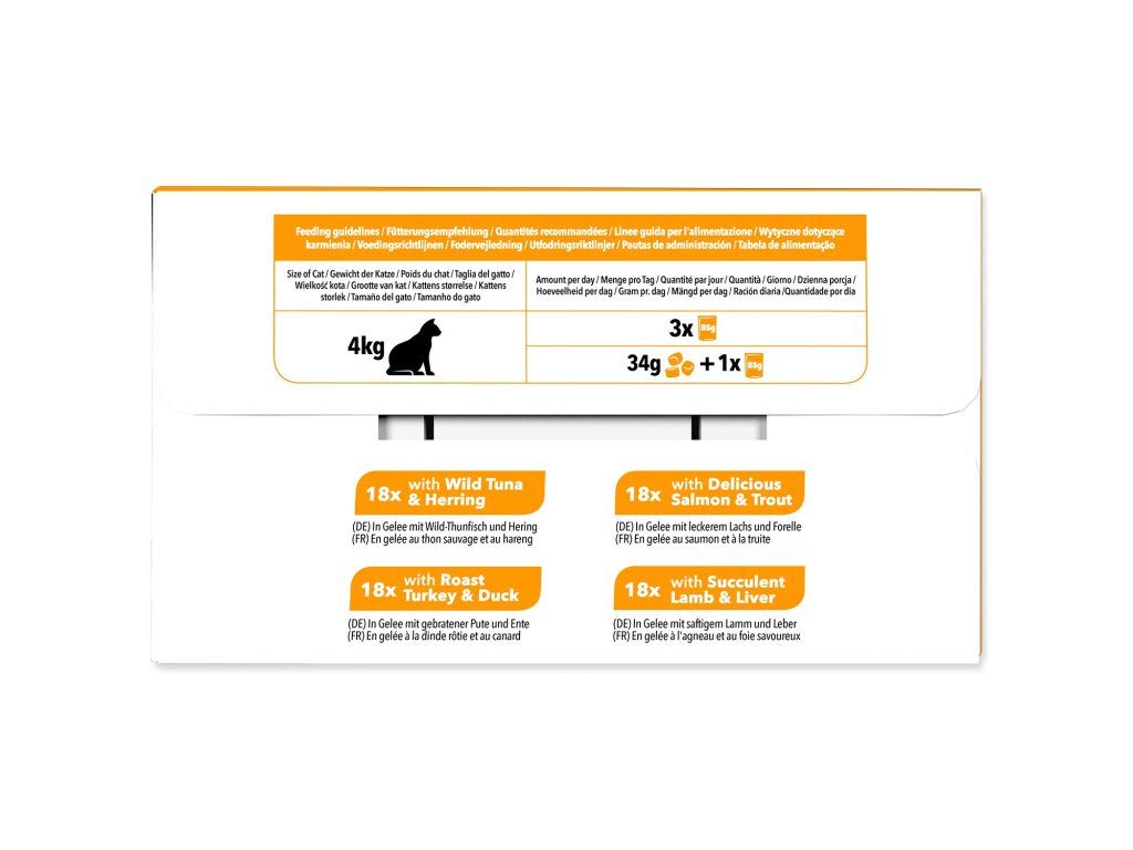 Pevninská a mořská kolekce IAMS Delights v rosolu je 100% kompletní a vyvážené prvotřídní mokré krmivo pro dospělé kočky v praktickém balení multipack.