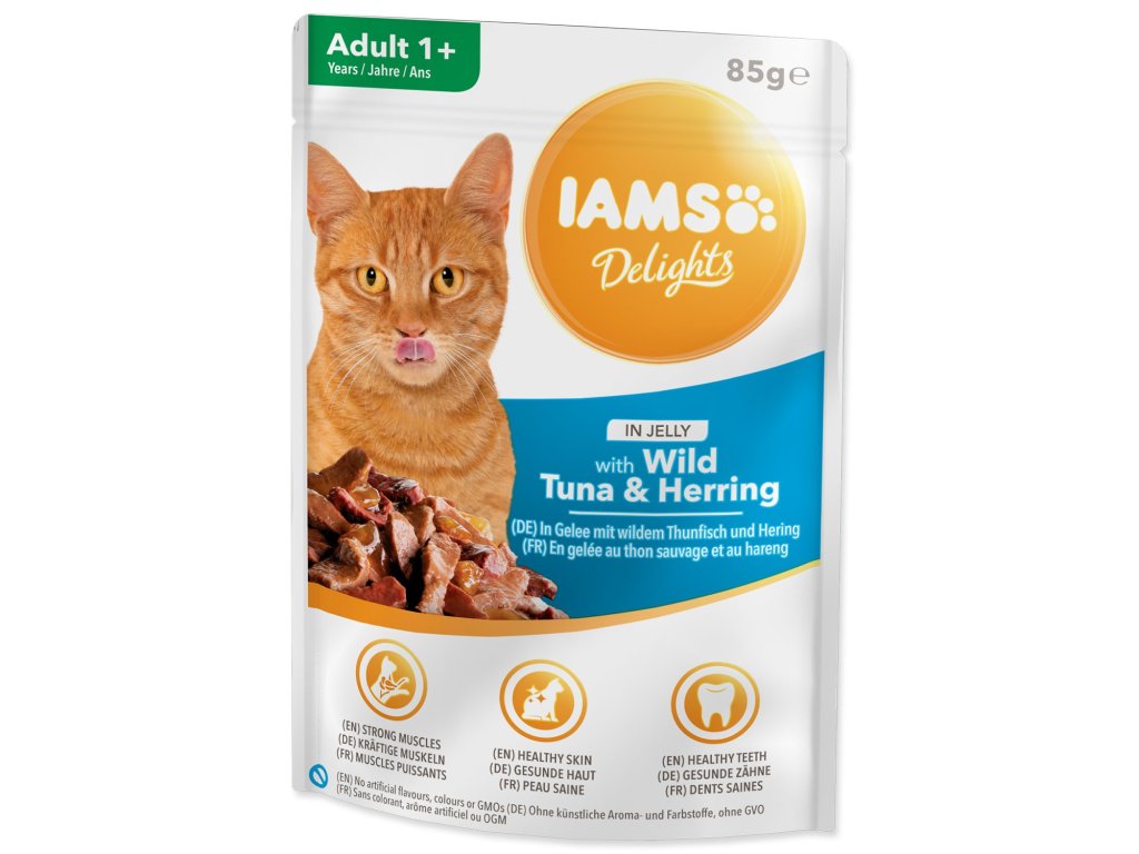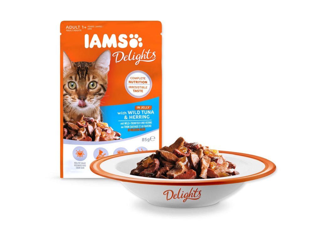 Kapsička IAMS Delights Adult tuňák a sleď v želé 85g