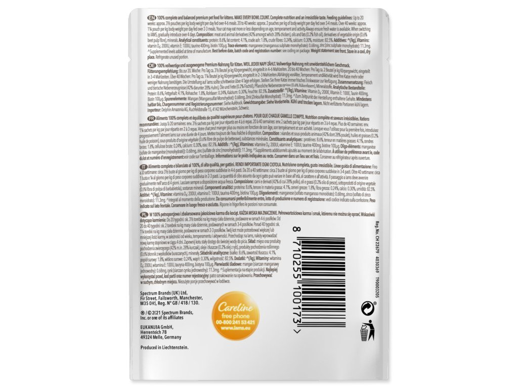 Krmný návod: koťatům ve věku do 20 týdnů věku podávejte cca. 3,5 kapsičky na kilogram váhy za den 4-6x denně, koťatům ve věku 20 až 40 týdnů cca. 2 kapsičky na kg váhy za den 3-4x denně, koťatům ve věku nad 40 týdnů cca. 1,25 kapsičky na kg váhy za den 2-3x denně. Vaše kočka může jíst více nebo méně v závislosti na věku, temperamentu a aktivitě.