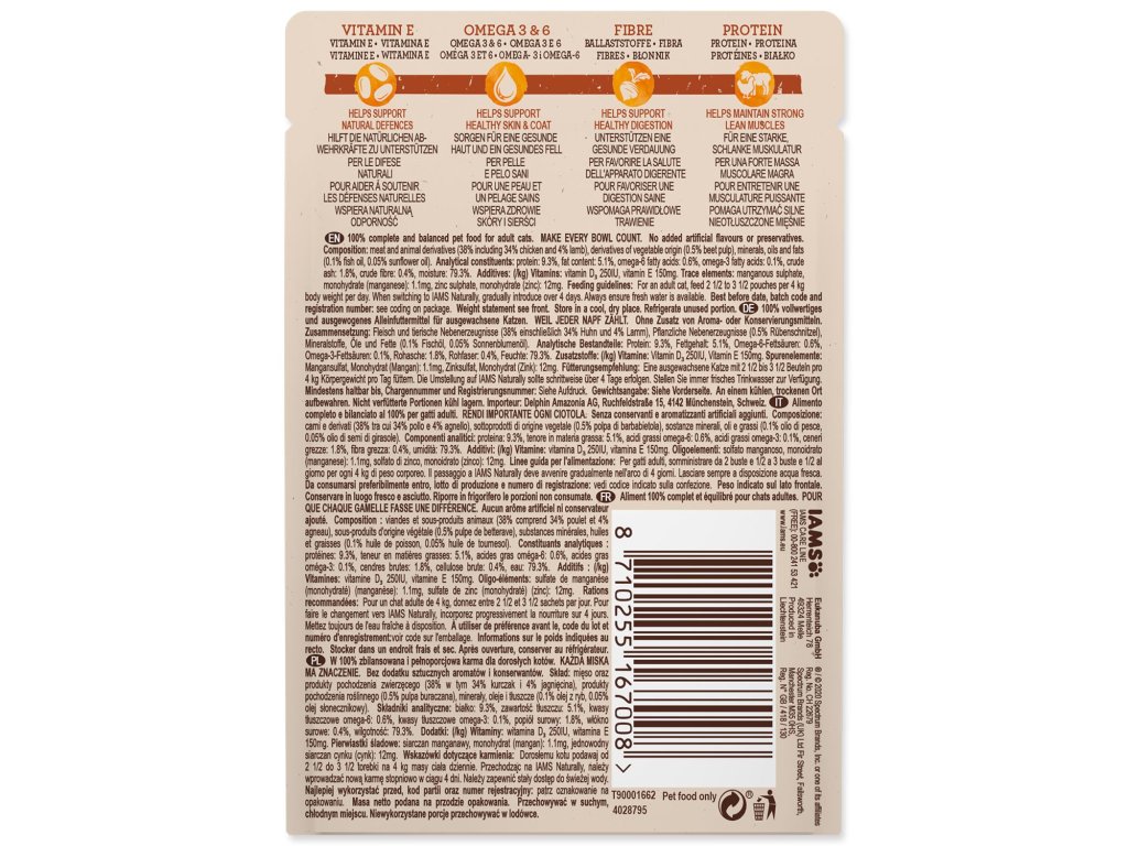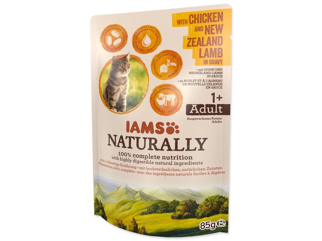 Kapsička IAMS Naturally Adult kuře & jehněčí v omáčce 85g