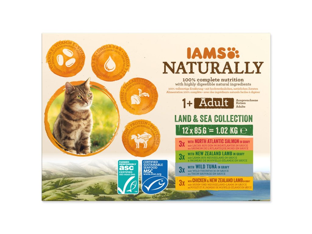 Kapsička IAMS Naturally Adult mořské a suchozemské maso v omáčce multipack 1020g (12x85g)